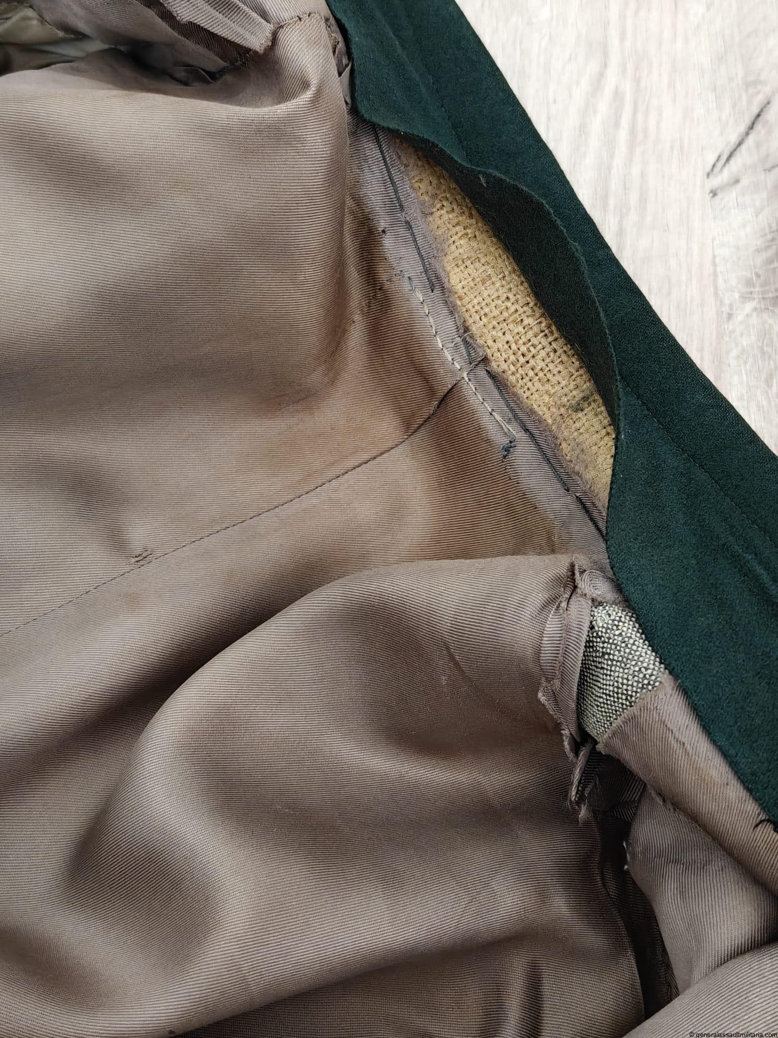 Heer Pioneer officers field tunic to a Hauptmann. Very nice jacket, in overall good condition but with some damage under a button, on the shoulder and a small hole on the right sleeve (see photos).Produced by Kurt Meier junior. Has loops for a long ribbon bar and a badge on the breast pocket.