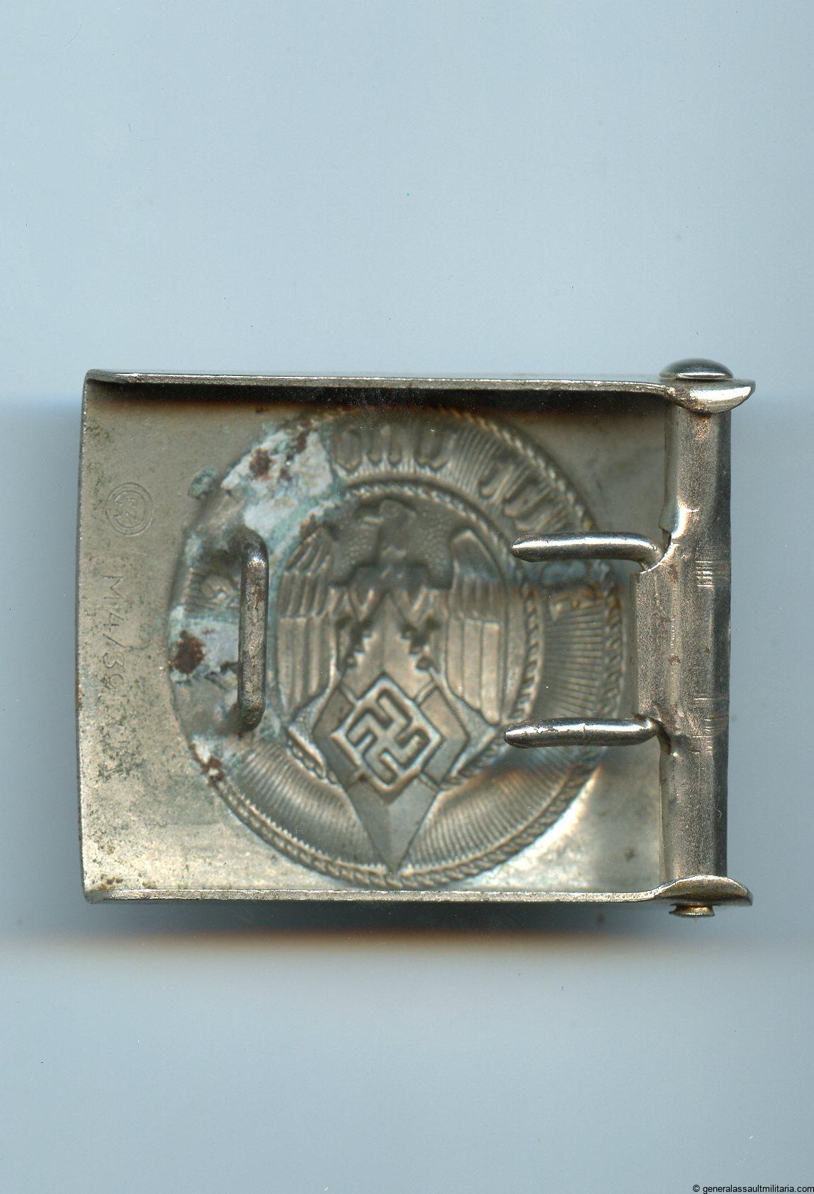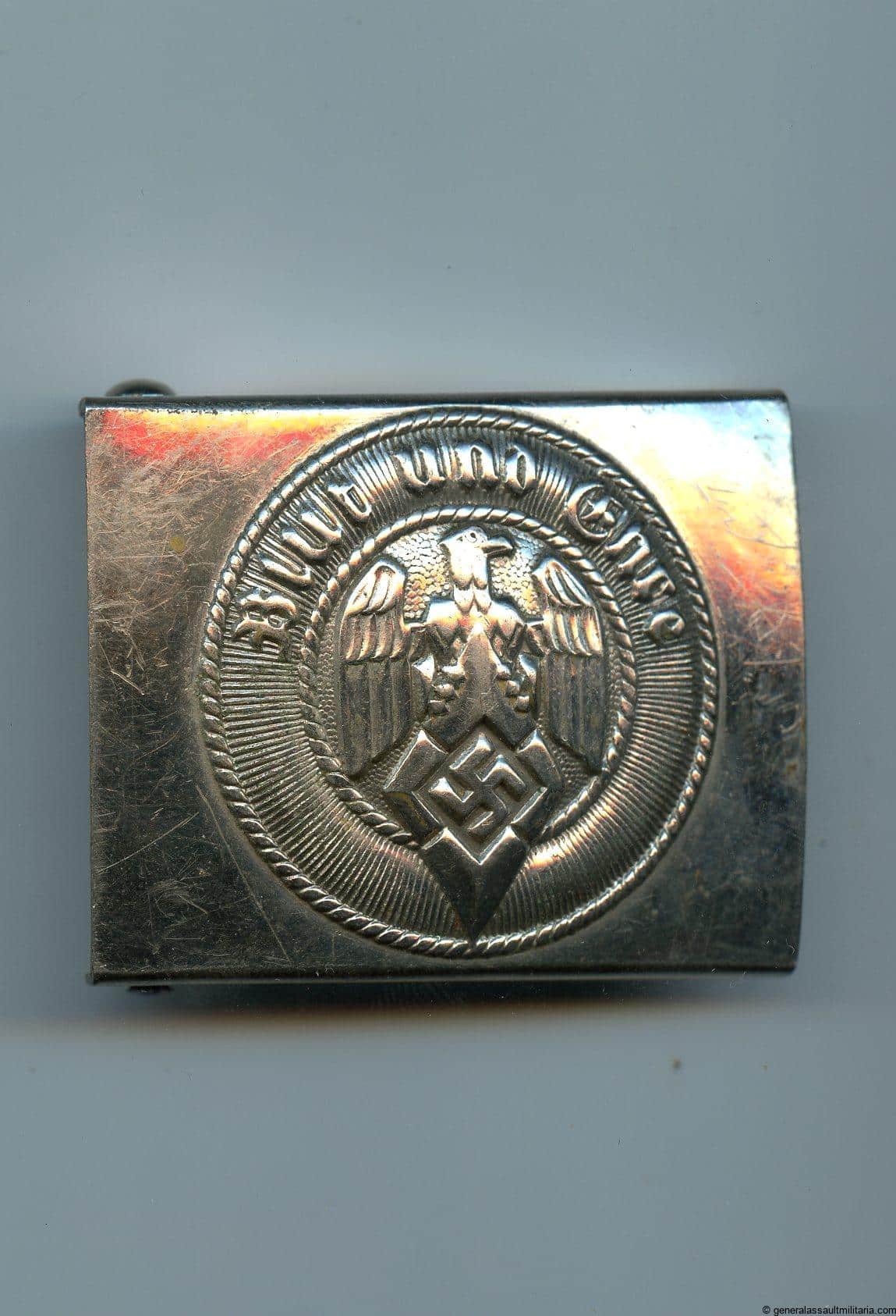Hitler youth buckle – Assmann & Söhne, Lüdenscheid. Early pre war steel RZM m4/39 HJ buckle with chrome plated finish. Remains in lightly worn condition and shows some a few scratched on the front with a near 100% preservation of the plating. Some Oxidation on the back but nothing that has affected the buckle much.
