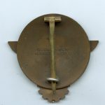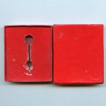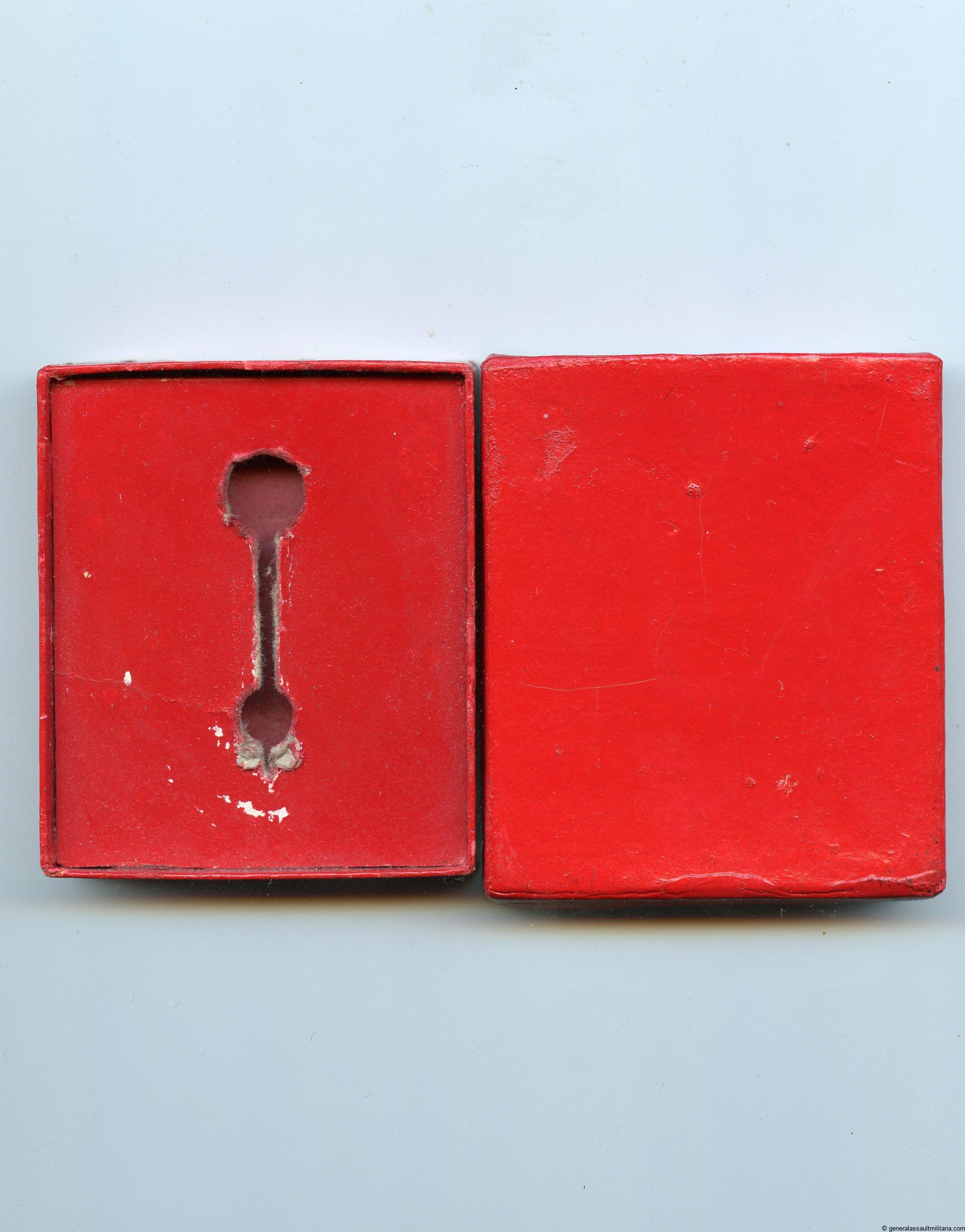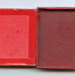 Hitler youth Kreissieger – G. Brehmer, Markneukirchen. 1938 Kreissieger with dark tone bronze appearance and only some light discoloration on the HJ diamond. Comes with matching case in average condition with some damage to the corners and edges. The case was repainted at some point in time to make it fully red and has the inlay glued to the inside. Normally these cases are white on the inside and color less on the bottom. Still a very attractive set with all original case. Most likely altered for display.