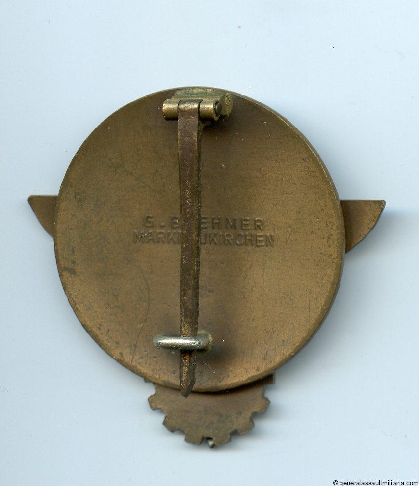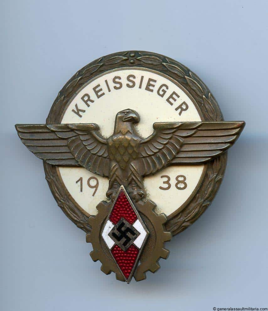 Hitler youth Kreissieger – Gustav Brehmer, Markneukirchen. 1938 verion made from tombac with enamel inlay. Remains in very lightly worn condition with all the finish present and no cracks or damage to the enamel. Top pre war HJ badge.