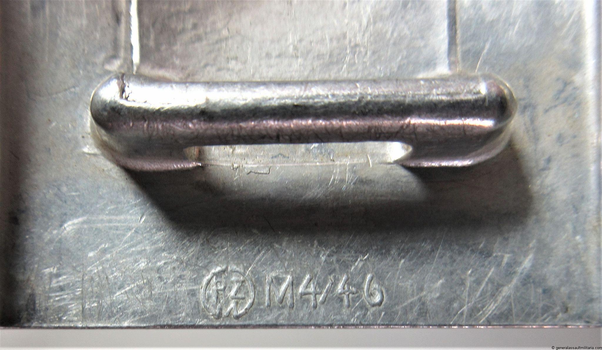 HJ Buckle – Wilhelm Schröder Lüdenscheid M4/46. Alluminium injection mold buckle in very good condition. remains in minorly worn condition and is marked RZM M4/46 for Wilhelm Schröder.