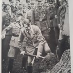 Ich Kämpfe NSDAP book with NSDAP dedication Krakau 1943. 1943 NSDAP book with movement songs, photos(color too), drawings, Information, list of people that died for the movment, important quotes and much more. Very interesting and good looking book in average condition. 4 strips of tape were added to the cover to keep it from getting in worse condition. Shows the NS eagle holding the swastika on the front.