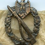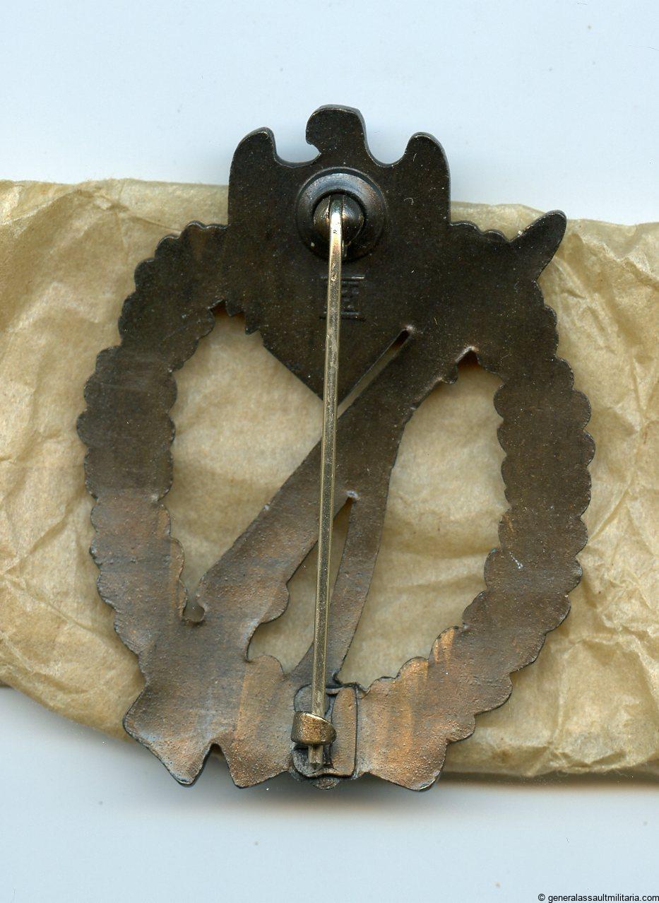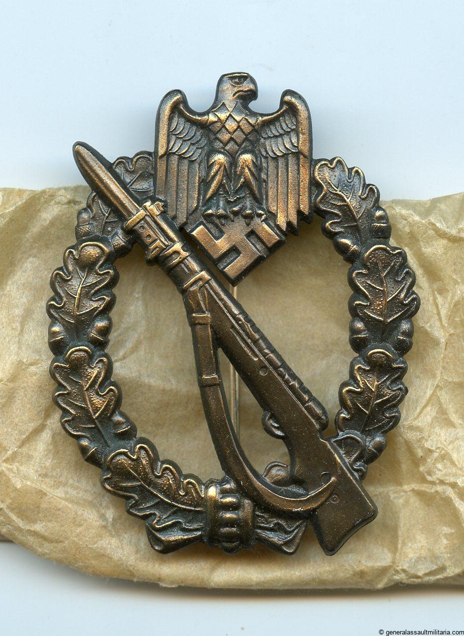 Infantry assault badge in bronze – Josef Felix & Söhne, Gablonz. Absolutely mint and stunning JFS example that was unwrapped for the first time since it was made. Has all the finish preserved and was never worn or damaged. Nicely marked JFS on the back and properly crimped in setup. Unupgradable condition and comes with the original paper wrap.