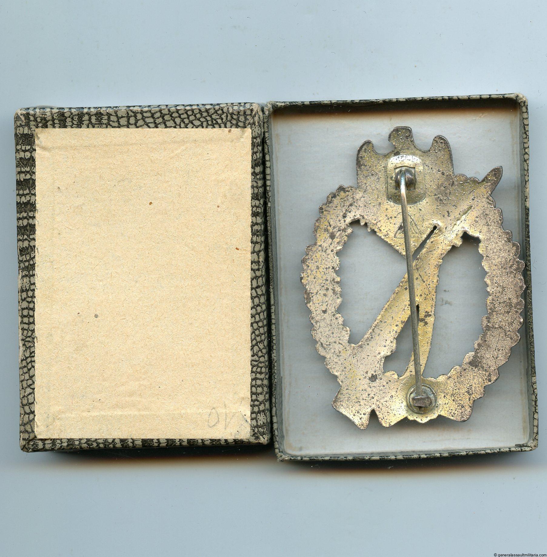 Infantry assault badge in silver + box – M.K. in triangle, Gablonz