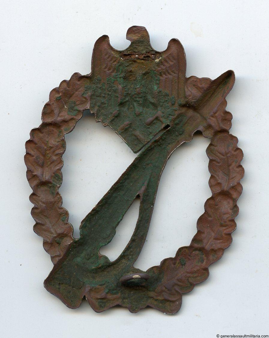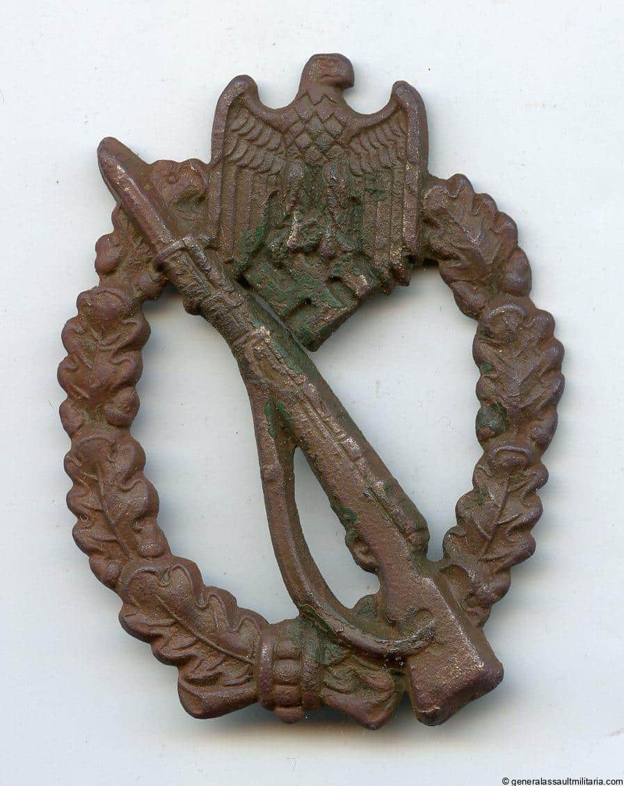 Infantry assault badge in silver – C.E. Juncker, Berlin. Early war nickel silver construction Juncker. Remains in ground dug condition with missing hinge and pin. Interesting ground dug piece!