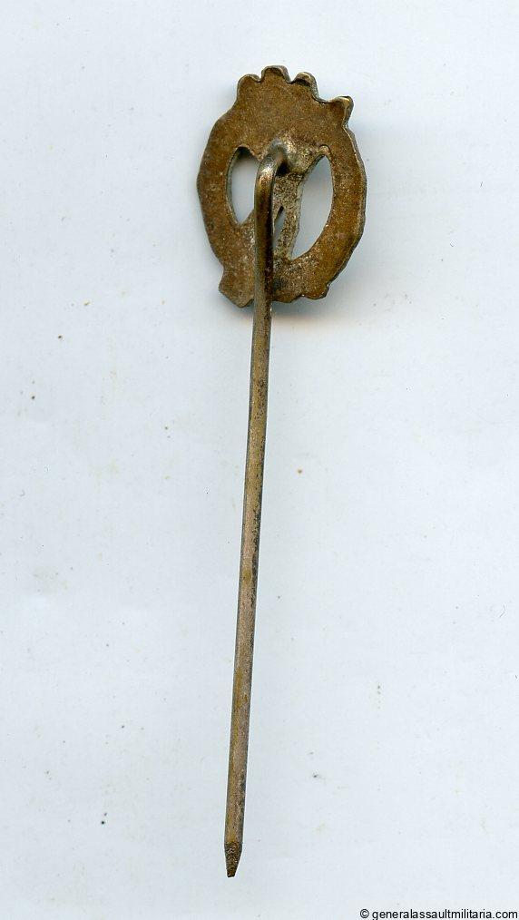 Infantry assault badge in silver miniature stickpin. Tombac pin with soldered on setup, in worn condition with most of the finish worn down.