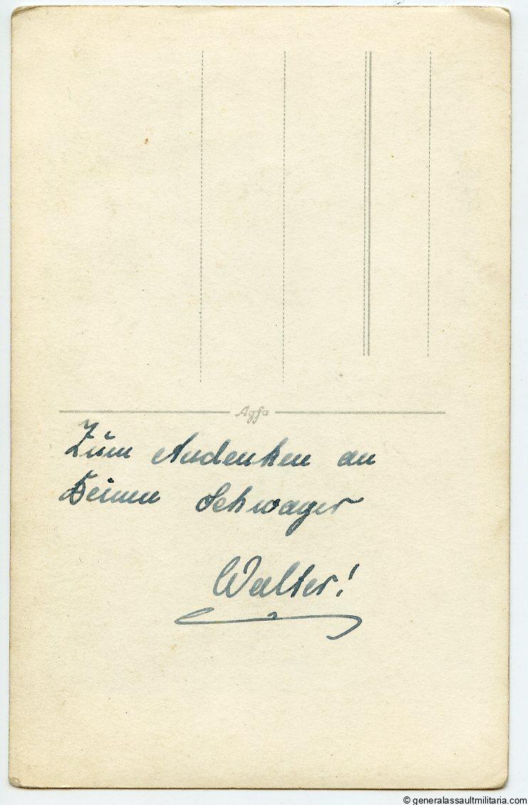 Infantry portrait with IAB, EK2 and KVK2 ribbon in wear. Remains in very good condition, produced on postcard size Agfa portrait paper.