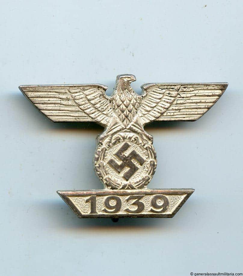 Iron cross 1st class repeat clasp – B.H. Mayer, Pforzheim. Early war tombac clasp with Mayer veined chest design and silver finish. Remains in lightly worn condition with nearly perfect finish remaining but still some wear showing. Excellent lightly worn ‘Wiederholungsspange’.