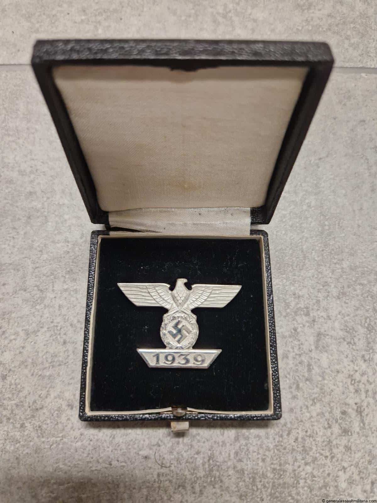 Iron cross 1st class repeat clasp cased – B.H. Mayer, Pforzheim. Early war tombac construction clasp with Mayer design, setup and veined chest design. Remains in perfect mint condition with no wear at all an beautiful bright silver frosting showing. Comes with matching case in very good condition, perfect inside with near mint outside. Excellent set!