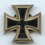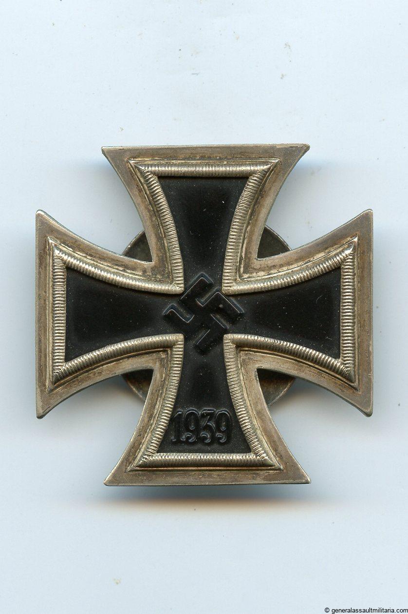 Iron cross 1st class screw back – C.E. Juncker Berlin. Three piece construction with magnetic iron core. Marked L/12 on reverse lower arm, typical Juncker frame and core. Remains in very good condition and has all the glossy paint still present. paint. The cross is slightly vaulted forward, which must have protected the core nicely. Top sought after Juncker Screw back Ek1.