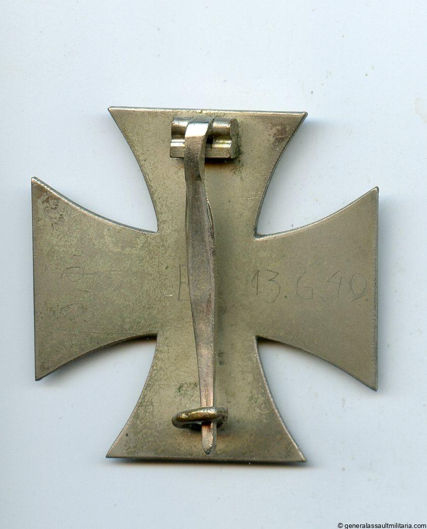 Iron cross 1st class – Steinhauer & Lück, Lüdenscheid. Early war cross with S&L design and brass core. Named EB and dated 13.6.40, hand scratched to the reverse. Remains in beautiful worn condition with some wear to the black finish on the core. A badge with lots of character.
