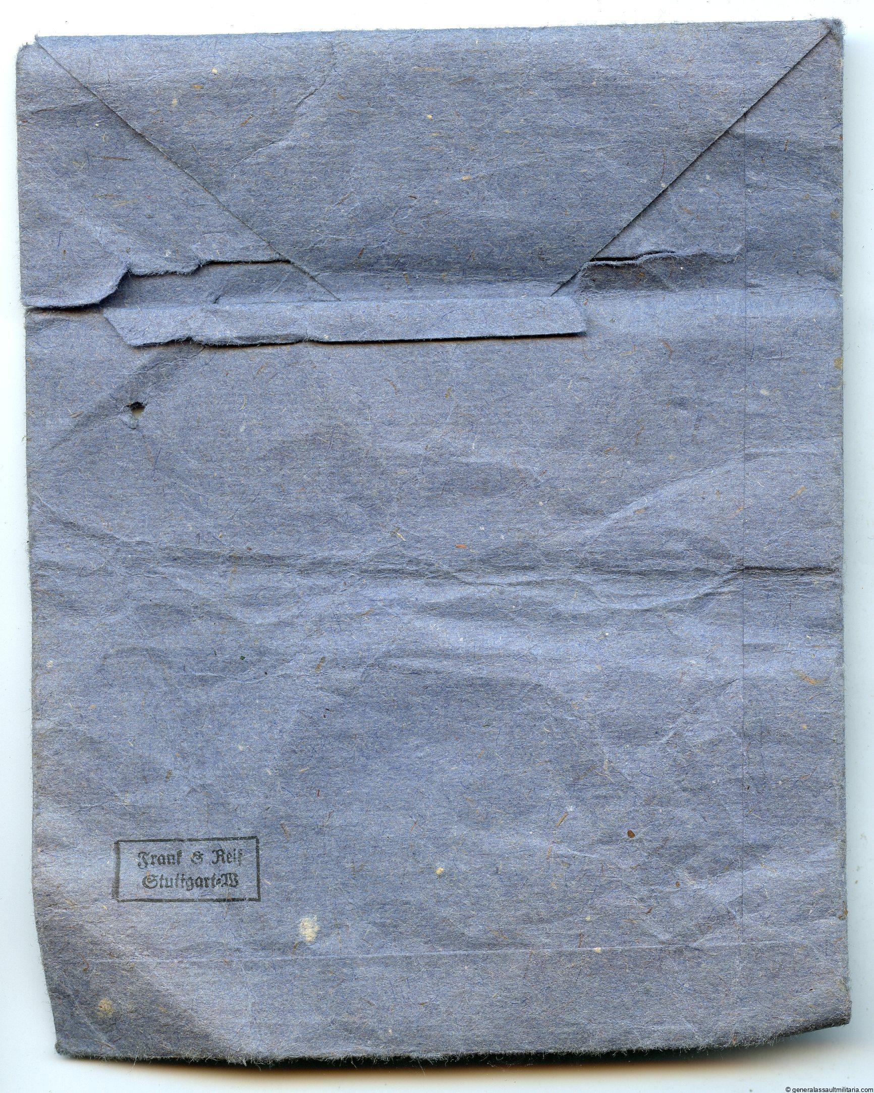 Iron cross 2nd class packet – Frank & Reif, Stuttgart (Übergrosse). Blue packet with Frank & Reif makers mark for the “Übergrosse” or “Litte Brother” Iron cross variants. Remains in very good condition with some slight wear near the the opening flap.