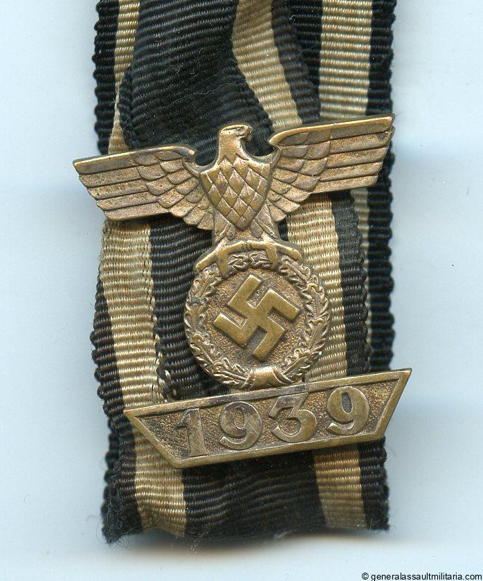 Iron cross 2nd class repeat clasp – Funcke & Brünninghaus, Lüdenscheid. Early war tombac clasp with thin silver plated finish, 4 prongs and F&BL design. Remains in good worn condition and comes with the original salty looking, equally worn, ribbon. Uncommon clasp with a slightly curved shape and all 4 prongs present. Difficult clasp to find!