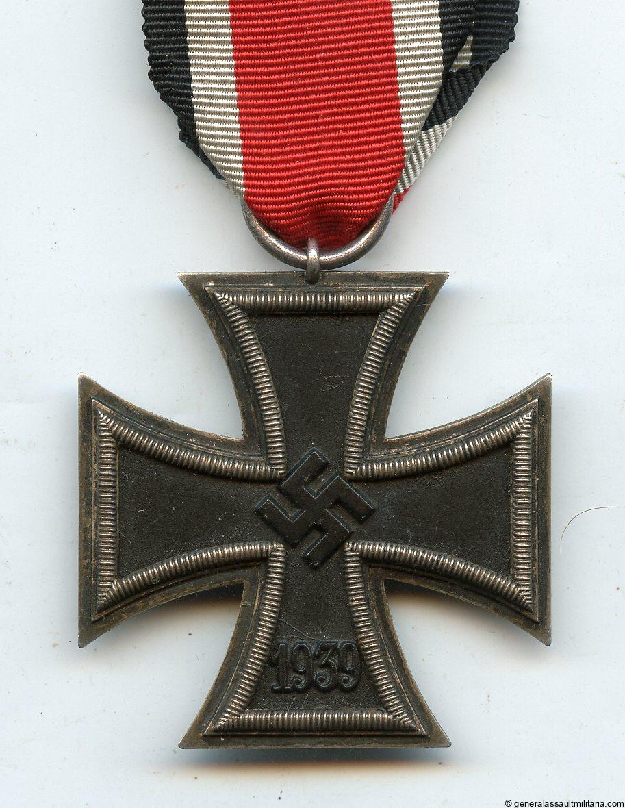 Iron cross 2st class – UM Fritz Zimmermann, Stuttgart. Early war three piece construction cross with Fritz Zimmermann design frame and core. Remains in excellent condition with perfect semi gloss finished black core and nicely patinated frame. Good quality heavy cross with very thick and distinct looking frame.