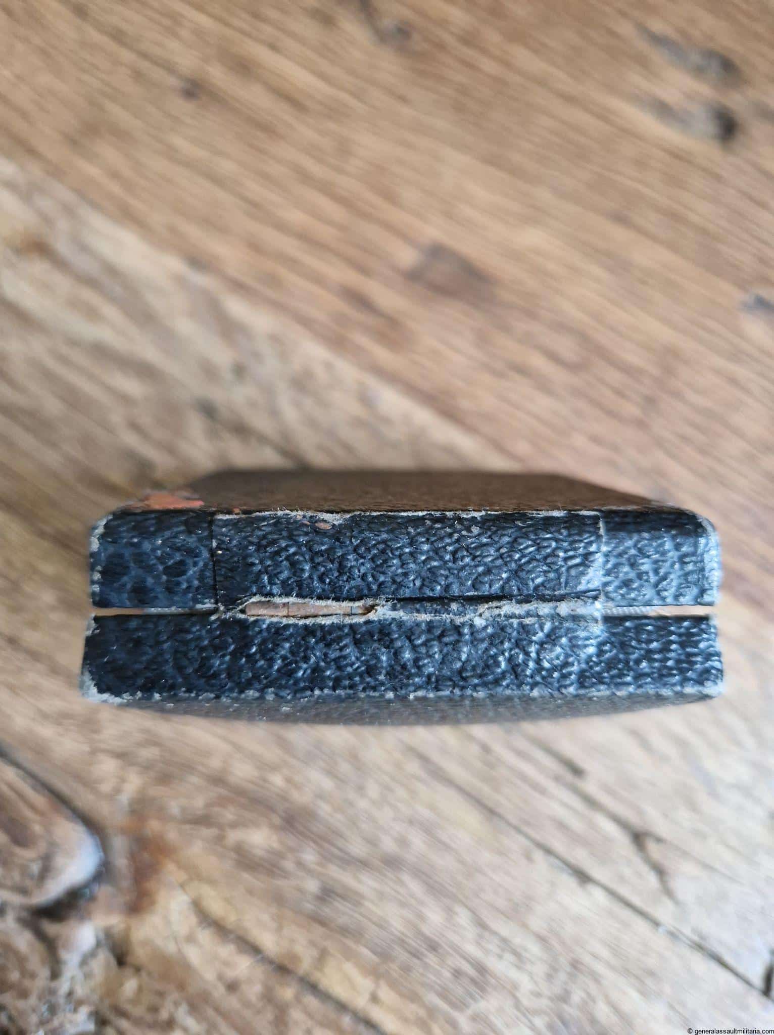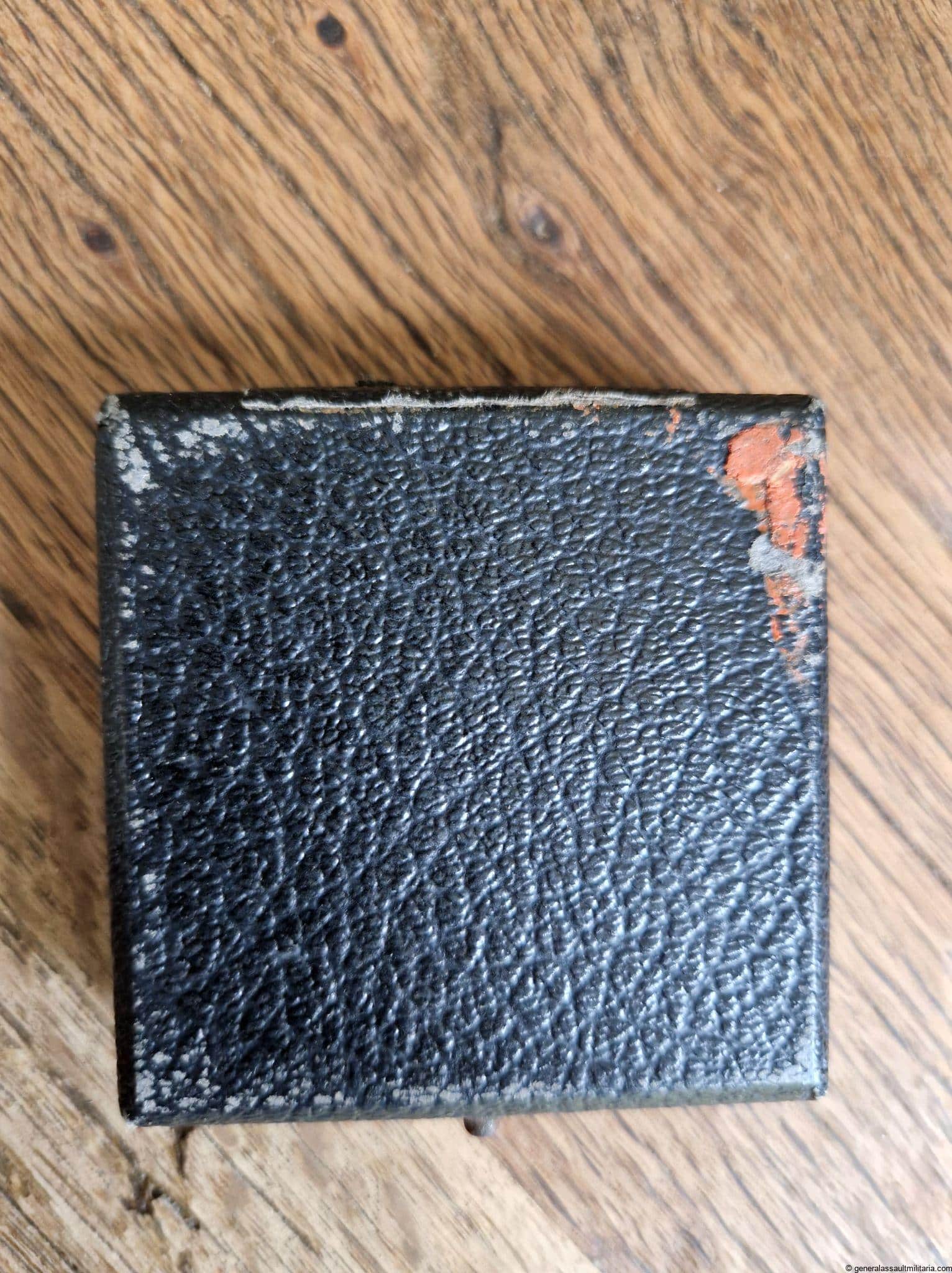 Iron cross first class case – UM 24 Arbeitgemeinschaft Etui. WW2 Ek1 box intended for the rare unmarked 24 iron cross. Remains in good condition with a bit of wear to the outside, some red residue on the bottom and a clean inside. Very difficult case to find that was only used for this specific maker.