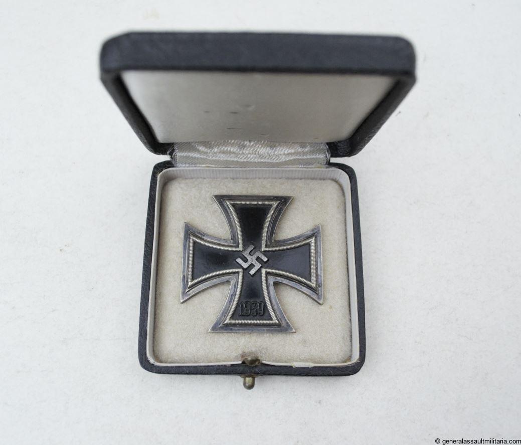 Iron cross first class (EK1) – Rudolf Wächtler & Lange, Mittweida. Early war unmarked W&H EK1 + case. The three piece construction cross remains in well worn condition with the swastika paint being fully worn down. The glossy lacquer on the arms shows a couple cracks and scratches, but has held its paint and color. Good Vaulted appearance to the cross. The case remains in very good condition with no damage to the outside. On top the white cross has faded and this was possibly done on purpose for what ever reason this may be, as there was never a swastika. The inside remains in comparable condition with only a couple small black dots on the back side. Cross fits perfectly with its vaulted appearance.