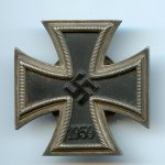 Iron cross first class – L/10 Deschler & Sohn, München. Heavy three piece construction cross with L/10 mark screw back disk and Deschler design core and frame. Remains in lightly worn condition with nearly all the mat black paint present. Shows a light patina throughout and nicely matches with the disc on the back. Top quality Deschler product and a very uncommon and sought after cross.