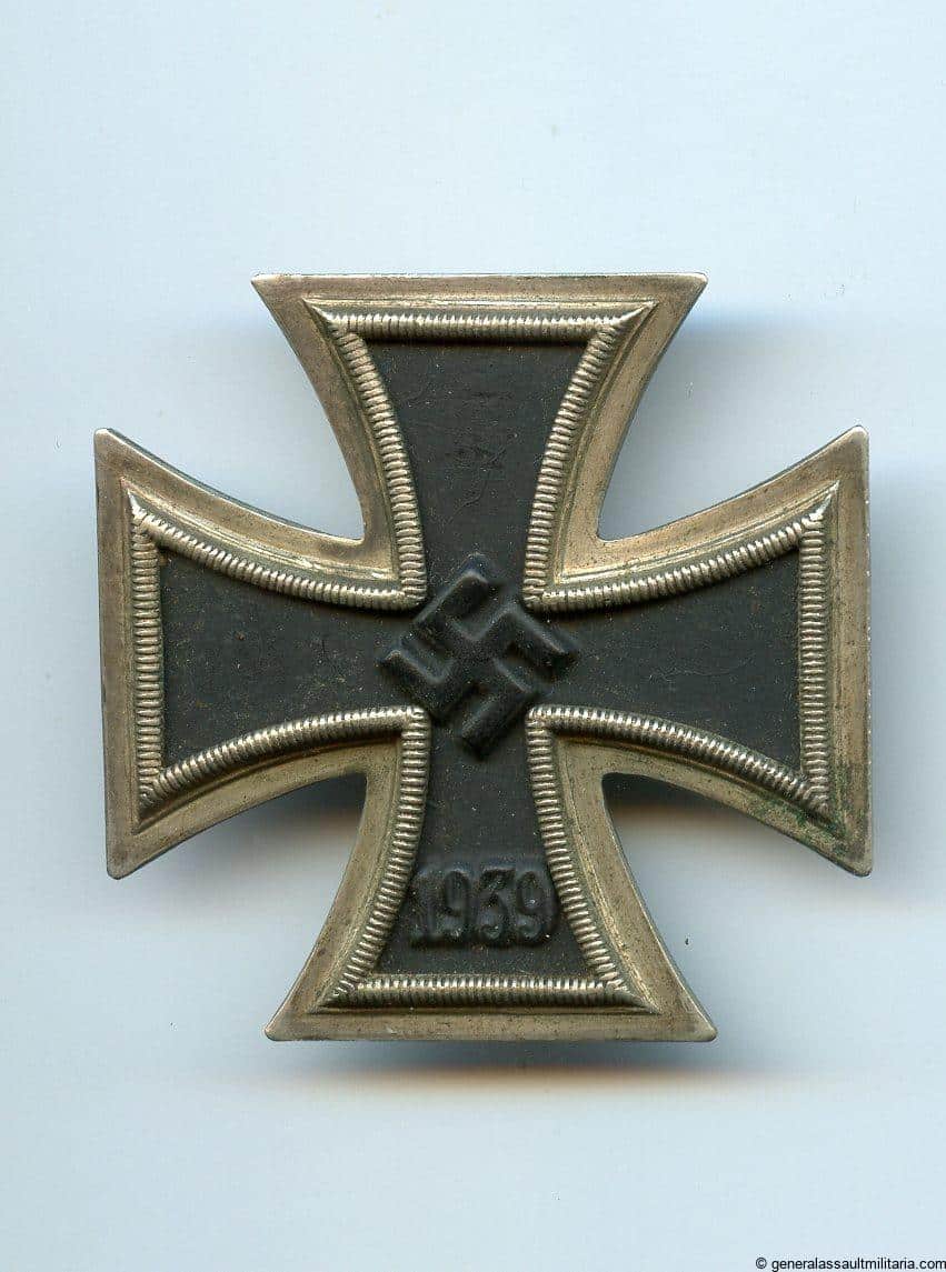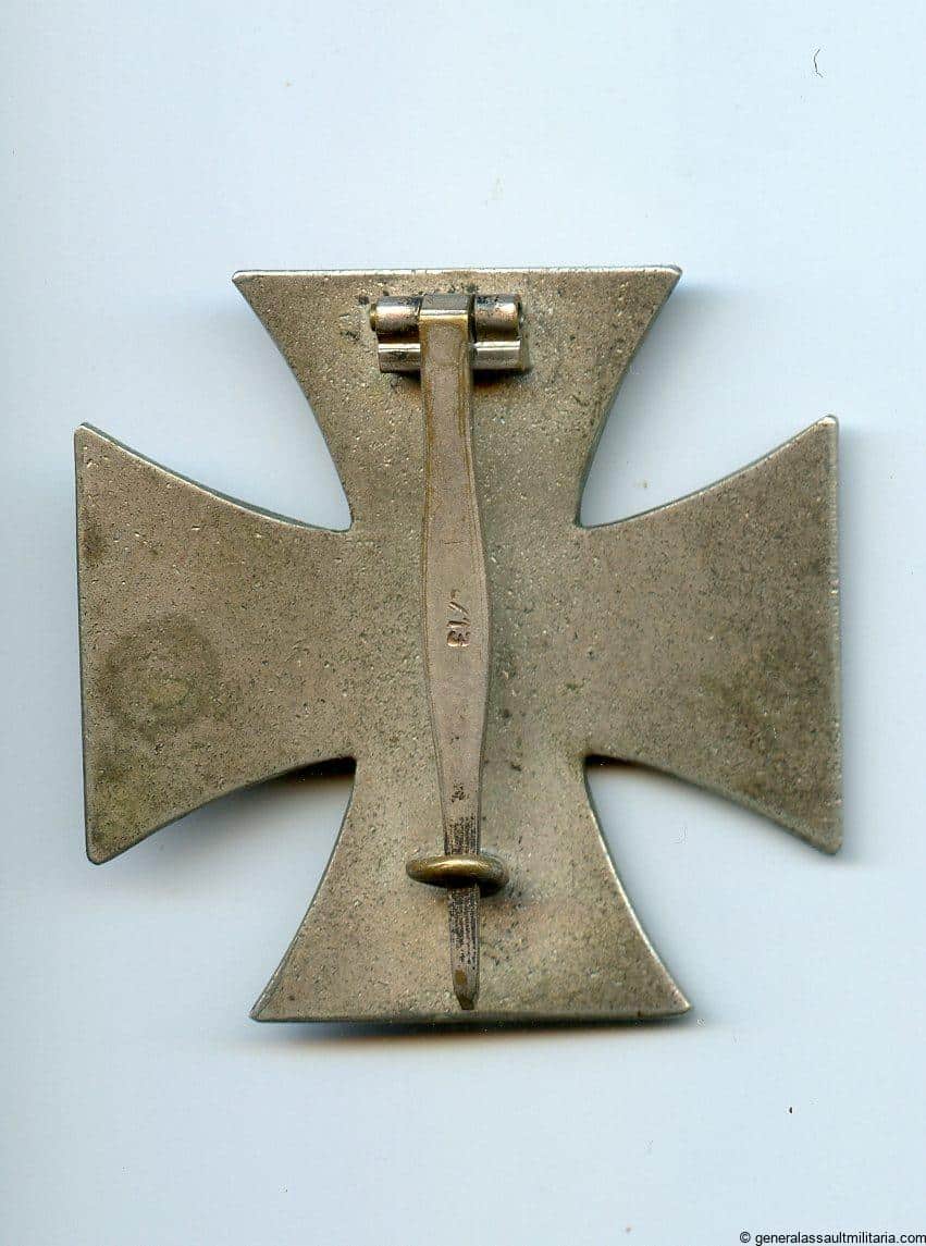 Iron cross first class – Paul Meybauer, Berlin. Three piece construction cross with Meybauer frame and core, maker marked L/13 on the pin with variant makers mark. remains in unworn condition and still has a perfect core and a yellowish patina to the frame. More often found with this typical patina on the frame. Well preserved cross, one of many Meybauer variants.