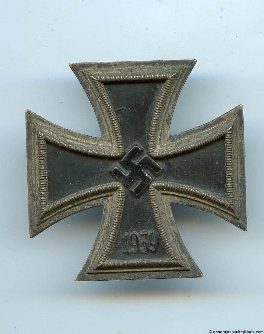 Iron cross first class – Rudolf Souval, Wien. Early war three piece construction cross with Souval core and frame. Remains in lightly worn condition with nearly perfectly black semi gloss lacquer core and thick Souval frame showing a good patina. Full Souval made product with the swastika on pedestal core. Quality cross!