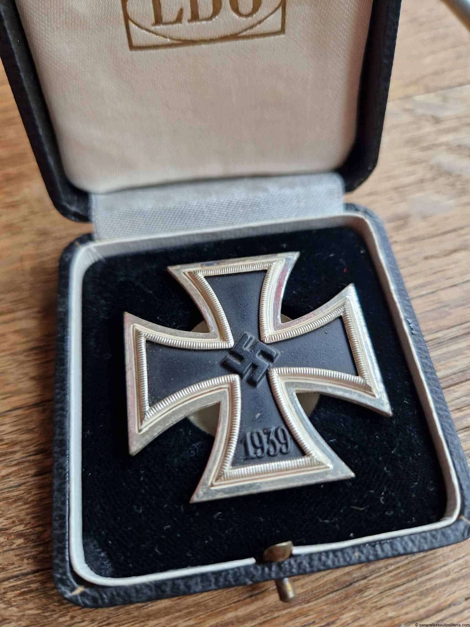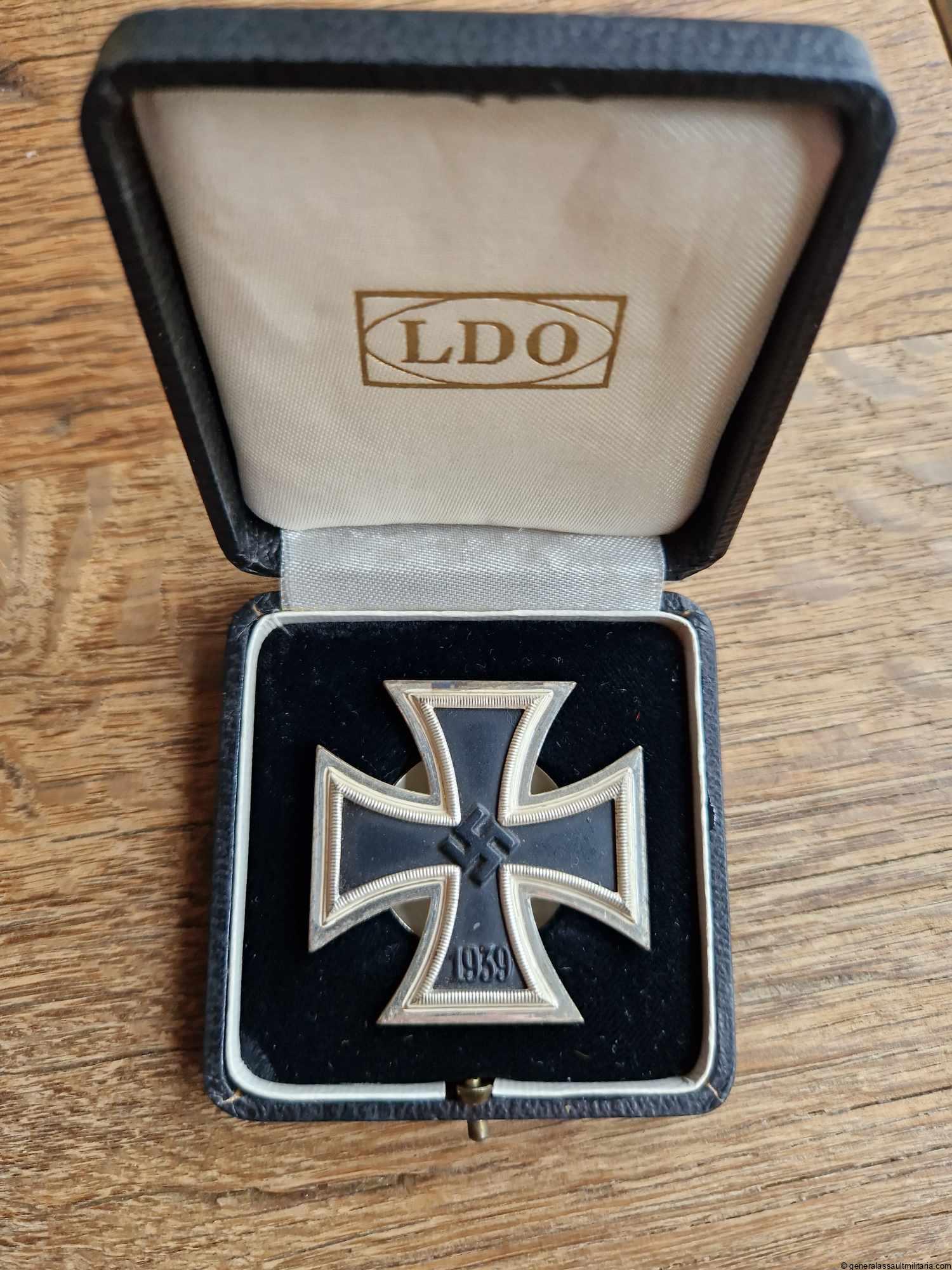 Iron cross first class SB – L/55 Wächtler & Lange, Mittweida. Mid to late war LDO cross with L/55 makers mark on the back of the frame, screwback disc and matching LDO case. Cross remains in unworn condition with all the frosting and polishing still on the cross. The core is near perfect and shows no staining. Comes with the correct early LDO case with soft inlay and LDO logo in the cover. Remains in near mint condition as well. Top more uncommon set!