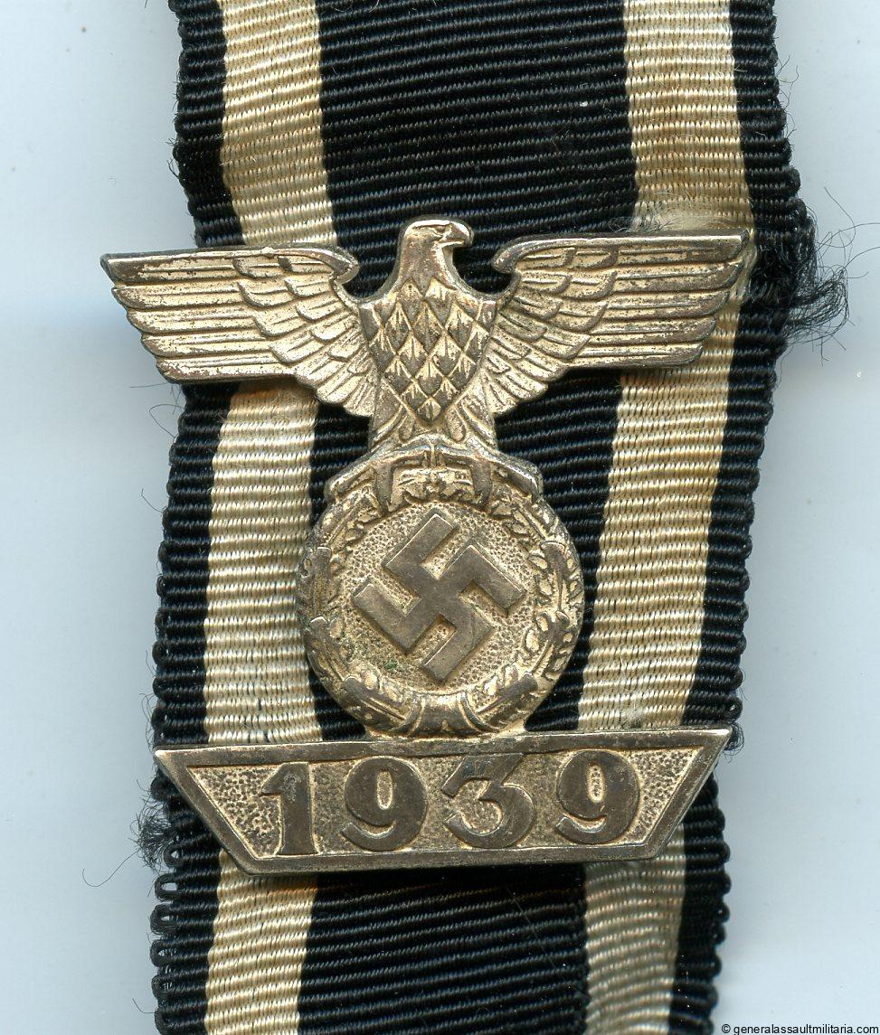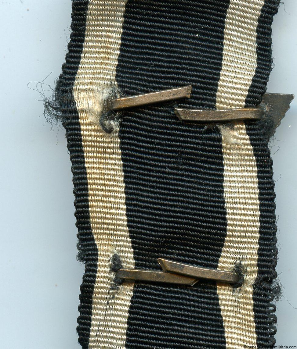 Iron cross repeat clasp – Wilhelm Deumer, Lüdenscheid. Early war tombac construction ‘Wiederholungsspange’ with Deumer design and 4 prongs. Remains in good worn condition with the original ribbon still attached to the 4 prongs. Good looking Deumer design clasp!