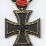 Iron cross second class – J.E. Hammer & Söhne, Geringswalde. Three piece construction cross with typical Hammer core and frame. Still perfect black core and a good looking patina on the frame. Quality unmarked cross with nice appeal. Comes with a 10cm+ ribbon.