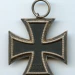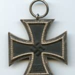 Iron cross second class – Klein & Quenzer, Idar Oberstein. Three piece construction ek2 with matt black core and K&Q frame. Remains in very good condition with a patinated frame and still fully black core. Unmarked cross that comes with a 10 cm ribbon(added).