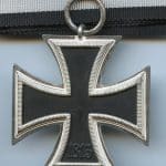 Iron cross second class – MM113 Hermann Aurich, Dresden. Three piece construction cross with frosted and polished frame. Remains in very good condition with nearly perfect frosting and polishing remaining and fully black core. Maker marked with the 113 mark in the ring. Comes with a new 10cm ribbon.