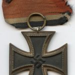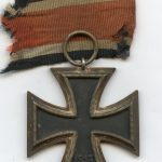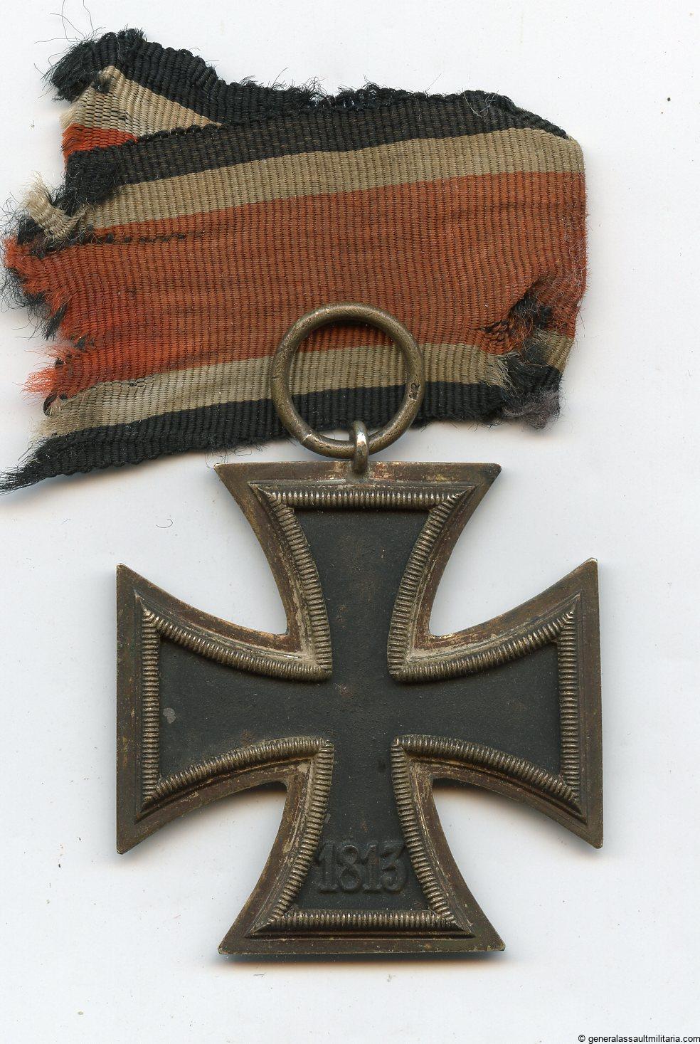 Iron cross second class – MM22 Boerger & Co, Berlin. Three piece construction cross with still fully black core and heavily patinated frame. Comes with a salty ribbon piece and and is nicely marker marked 22 in the ring. More uncommon ek2.