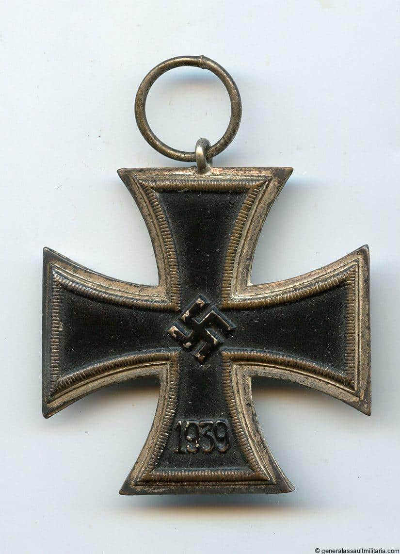 Iron cross second class – Otto Schickle, Pforzheim. Early war tombac one piece construction iron cross with ww1 style Schickle design frame. Remains in “worn” condition with some of the fragile glossy black lacquer worn down on the core and a good patina on the thinly silvered frame. Uncommon early cross.