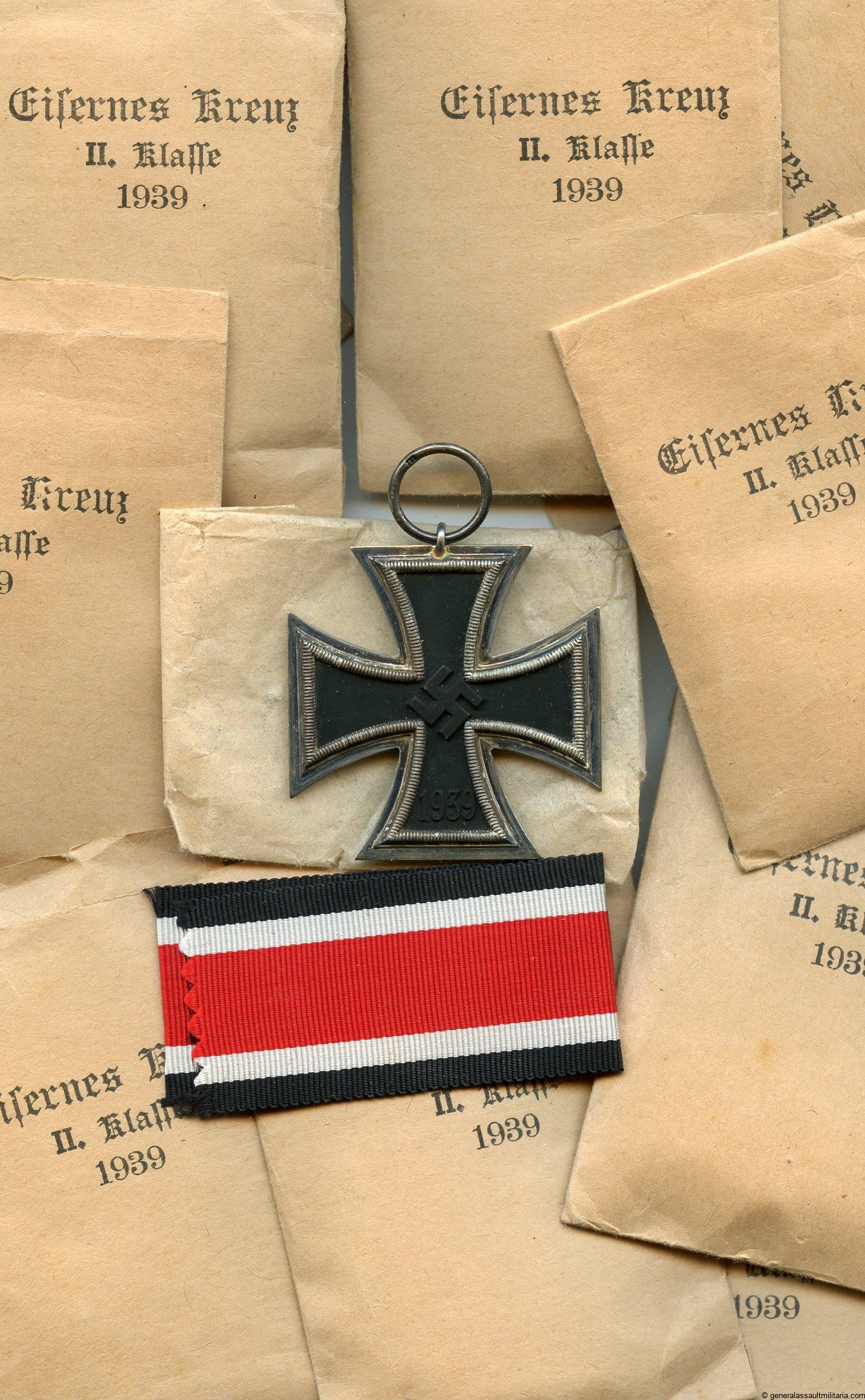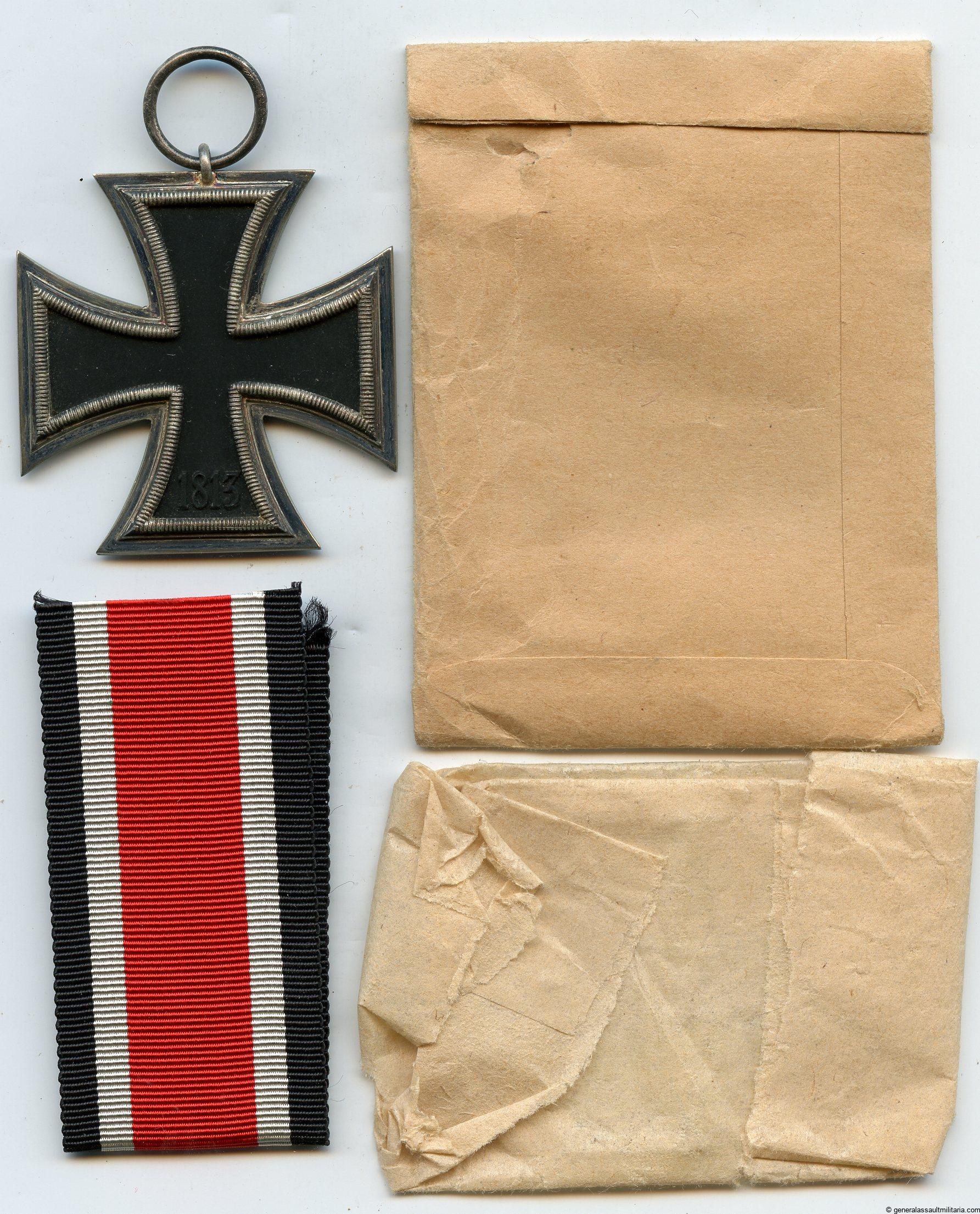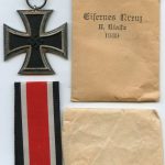 Iron cross second class + packet – MM27 Anton Schenkl, Wien. Mint unopened hoard find Ek2 wit PkZ code 27. Remain in mint condition with a full black core and some light patina on the frame. Packets remain in mint condition and were probably marked on the flap before these were cut off, possibly done to hide the maker after the war.