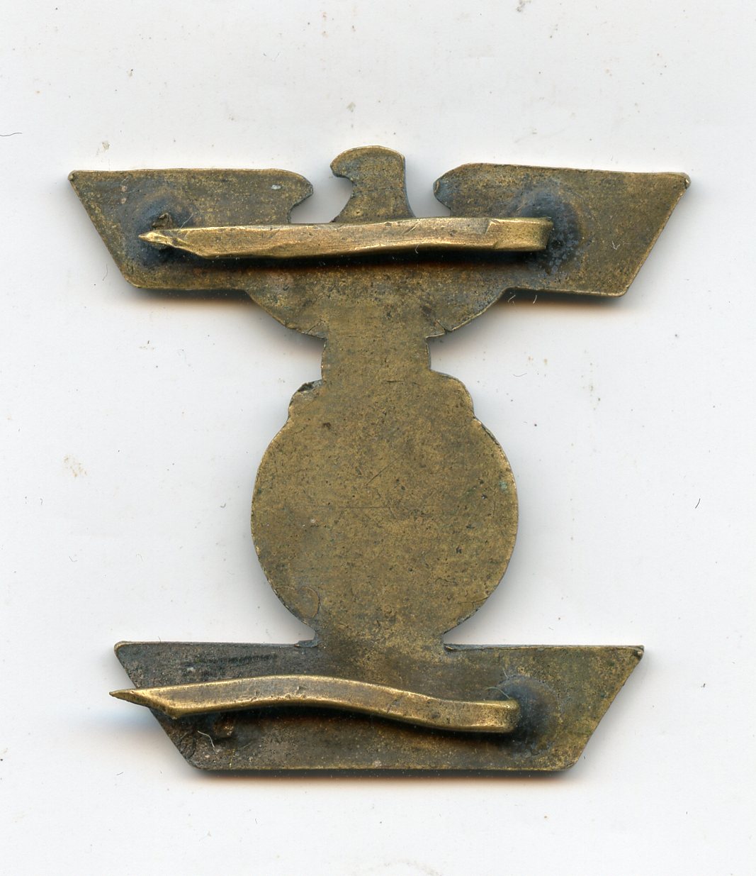 Iron cross second class repeat clasp – Hymmen & Co, Lüdenscheid. Second pattern tombac clasp with Hymmen & Co design. Beautifully worn with the tombac base layer showing on the worn areas of the clasp. Has two out out of four original prongs remaining and might have the other two removed on purpose, based up on the ribbon is attached. Extremely uncommon variant with a unique and well detailed design.