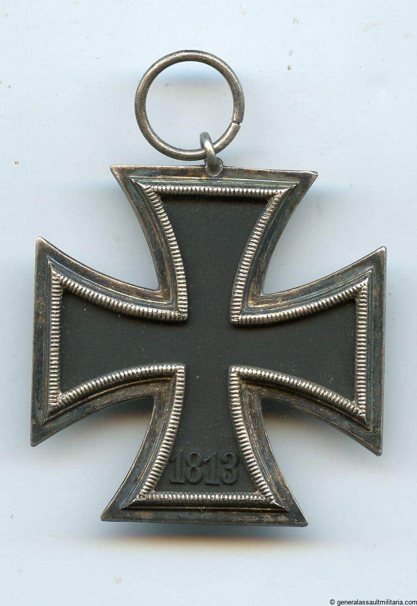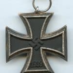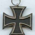 Iron cross second class round 3 – Deschler & Sohn, München . Early Ek2 with round 3 core and Deschler design frame. Remains in very good condition with all black finish on the core in perfect condition and light patina on the frame. Heavy and good quality cross! Comes with 10cm ribbon(added).