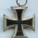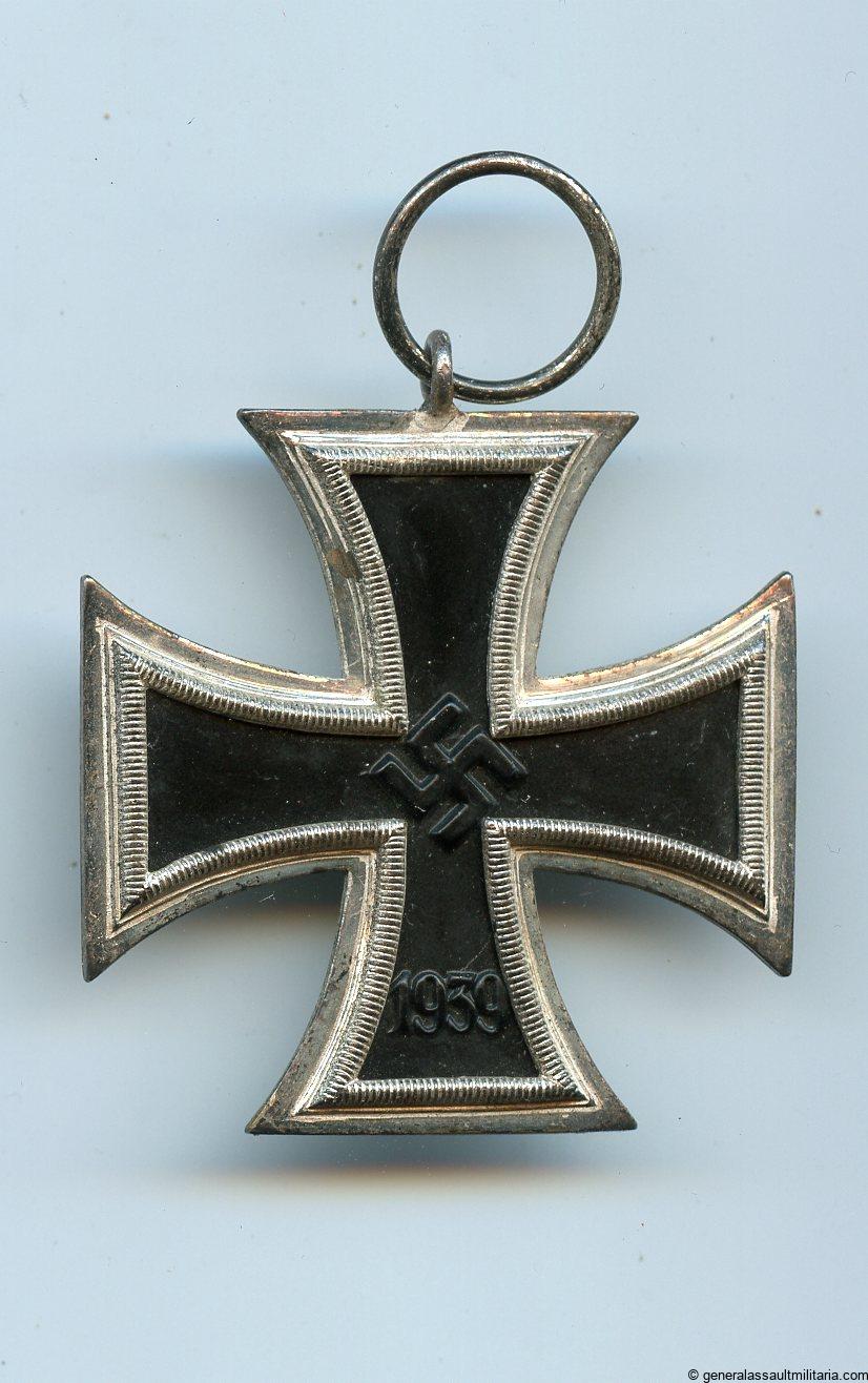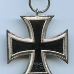 Iron cross second class Schinkel frame – Wilhelm Deumer, Lüdenscheid. Early three piece construction Ek2 with Deumer Schinkel type frame. Remains in very good condition with nearly all frosting present and a still perfect black core. Very good looking example that comes with a full length ribbon.