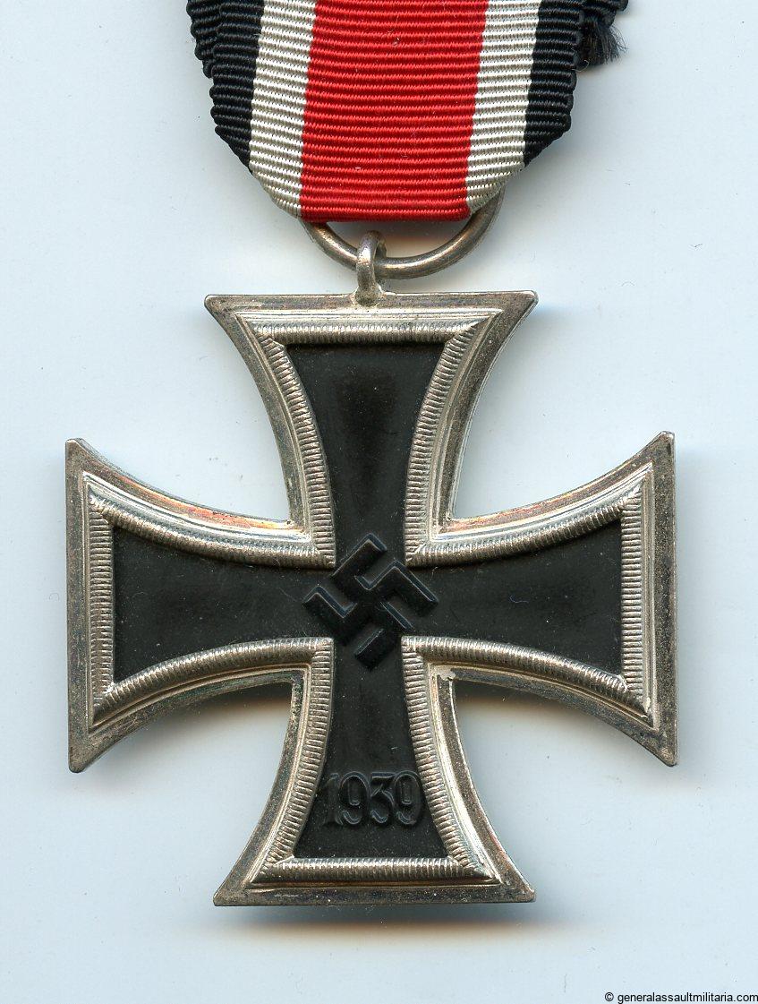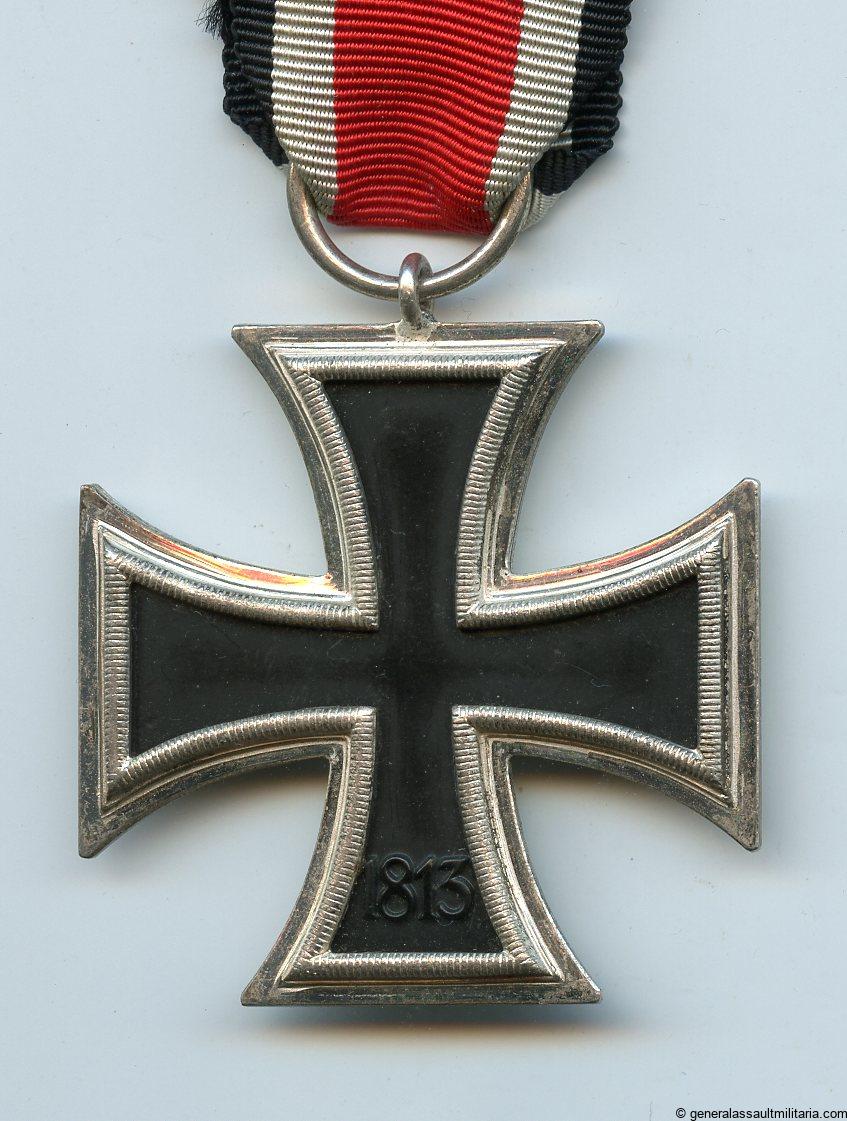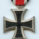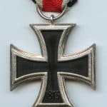 Iron cross second class Schinkel frame – Wilhelm Deumer, Lüdenscheid. Early three piece construction Ek2 with Deumer Schinkel type frame. Remains in very good condition with nearly all frosting present and a still perfect black core. Very good looking example that comes with a full length ribbon.