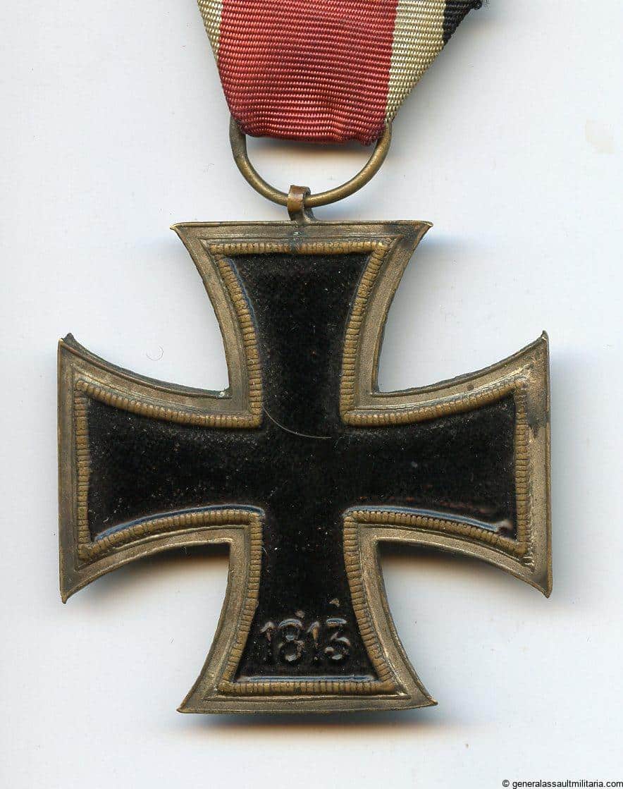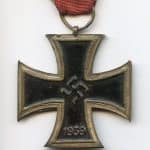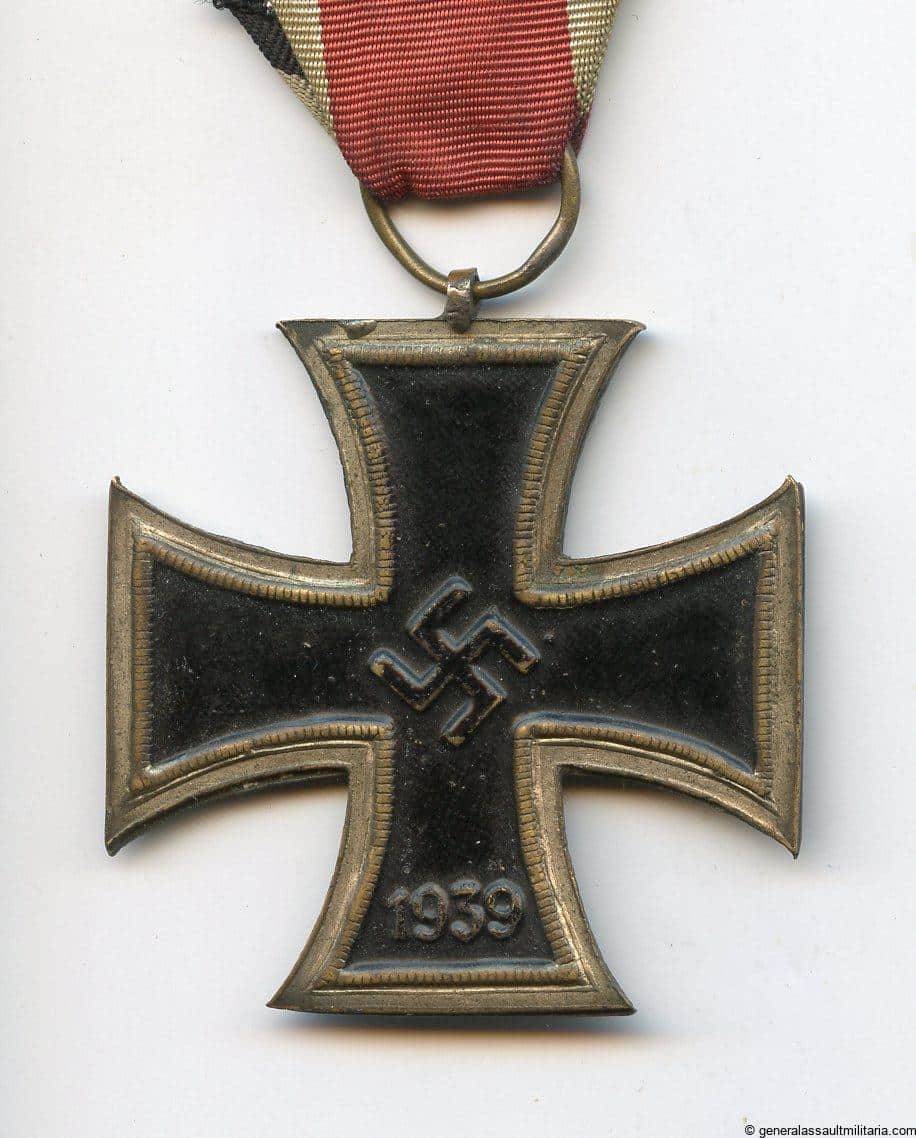 Iron cross second class – Spanish made version. One piece tombac construction with fairly crude but appealing design. Pebbled core with nearly all black paint remaining on the front and back. Good patina and finish remain on the wreath and comes with the typical Spanish attachment device for wearing.