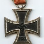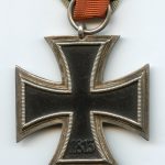 Iron cross second class – variant “8”. Three piece construction Ek2 with thick attachment ring and semi gloss finished core. Remains in very good condition with all the lacquer still on the core. Very uncommon variant referred too as “8”. Comes with slightly decolored and used ribbon.