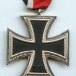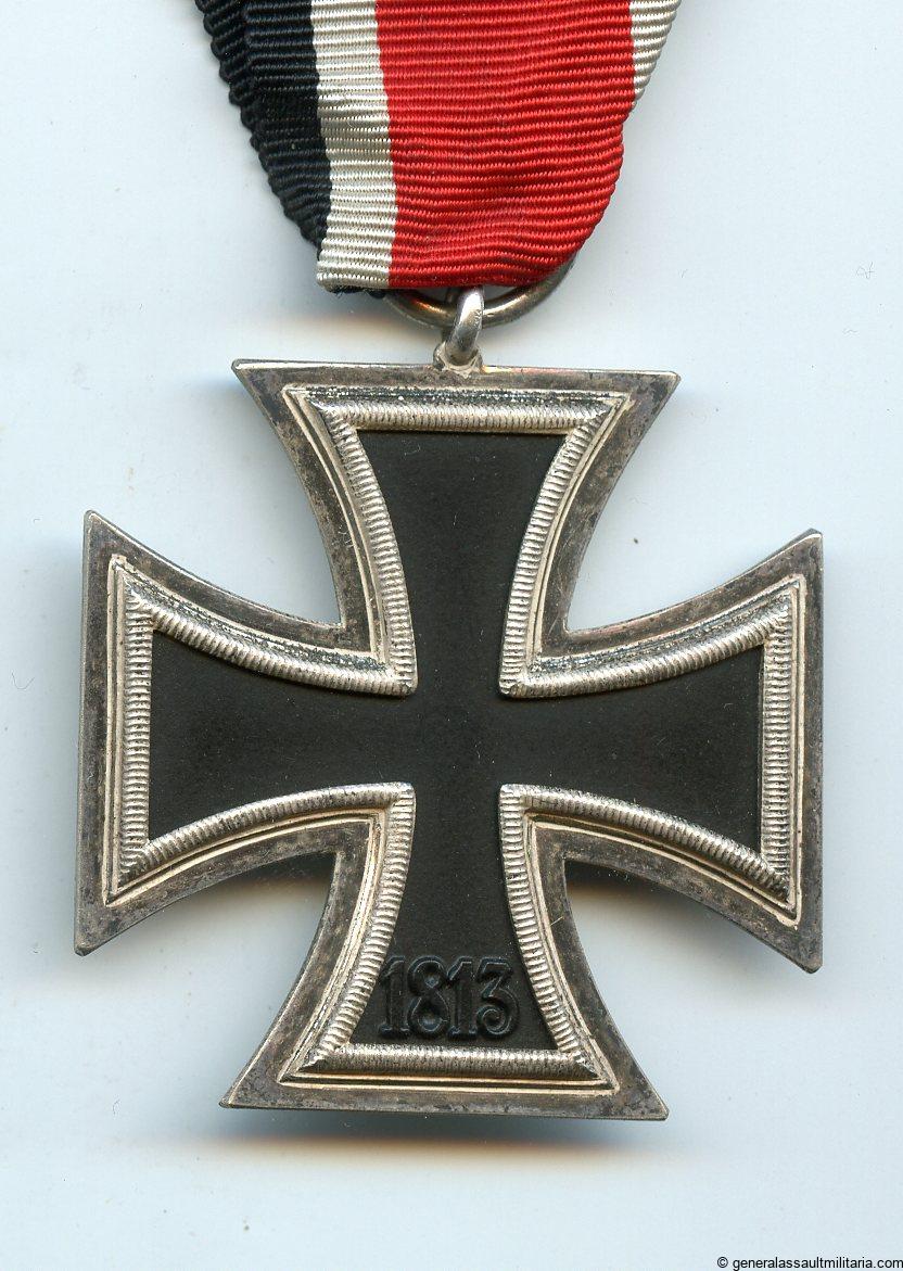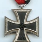 Iron cross second class – Wächtler & Lange, Mittweida. Three piece construction cross with perfect black core and still bright frosting on the frame. Shows no patina on the frame has a typical W&L core and frame. Top cross. Comes with a 10cm+ ribbon.