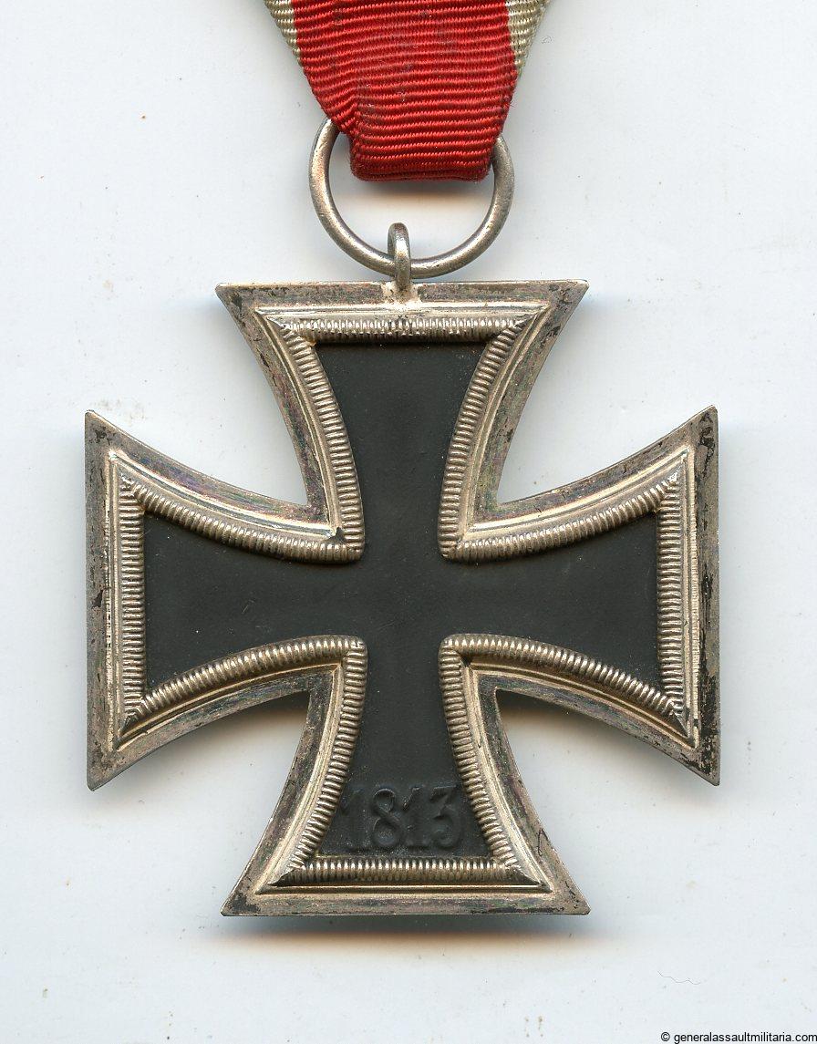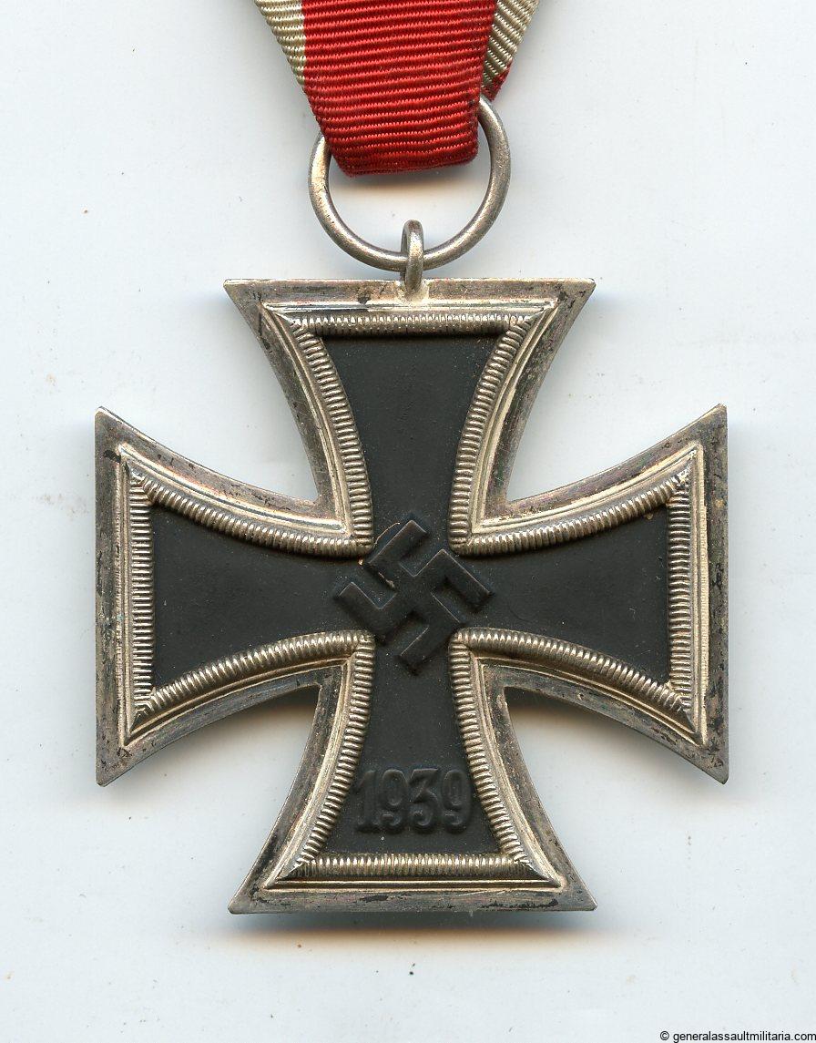 Iron cross second class – Walter & Henlein, Gablonz. Three piece construction cross with nicely frosted frame and nearly all of the mat black finish present on the core. Slightly scratch near the swastika but overall in very good condition with most of the frosting still present. Always unmarked but known frame and core from W&H. Comes with a 10cm+ ribbon.