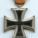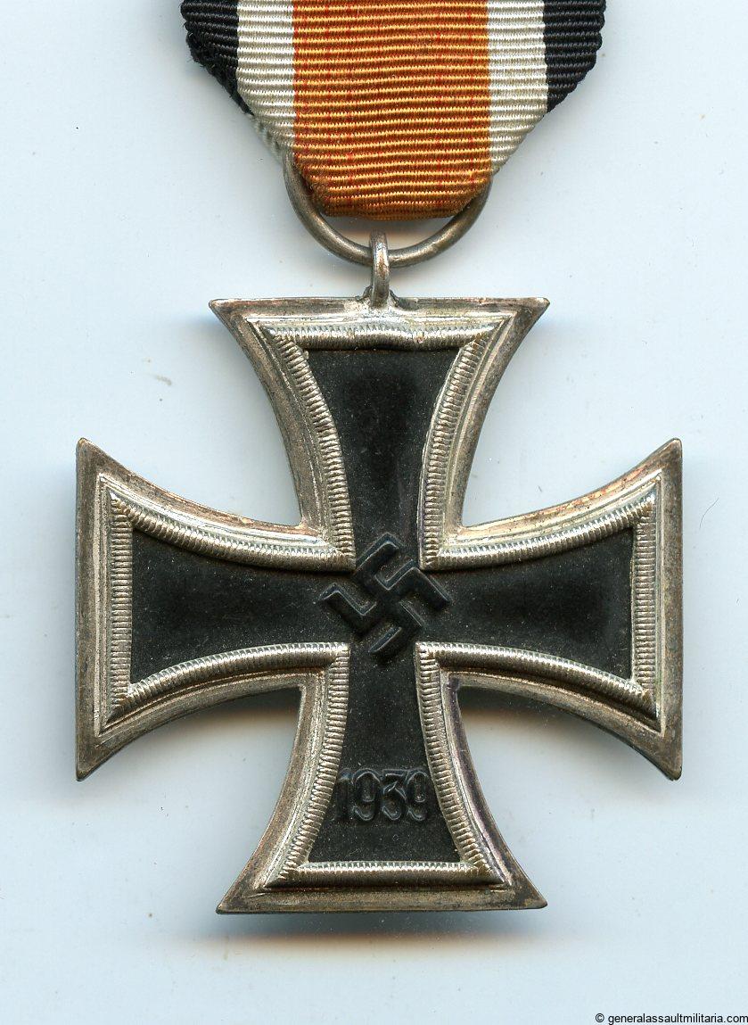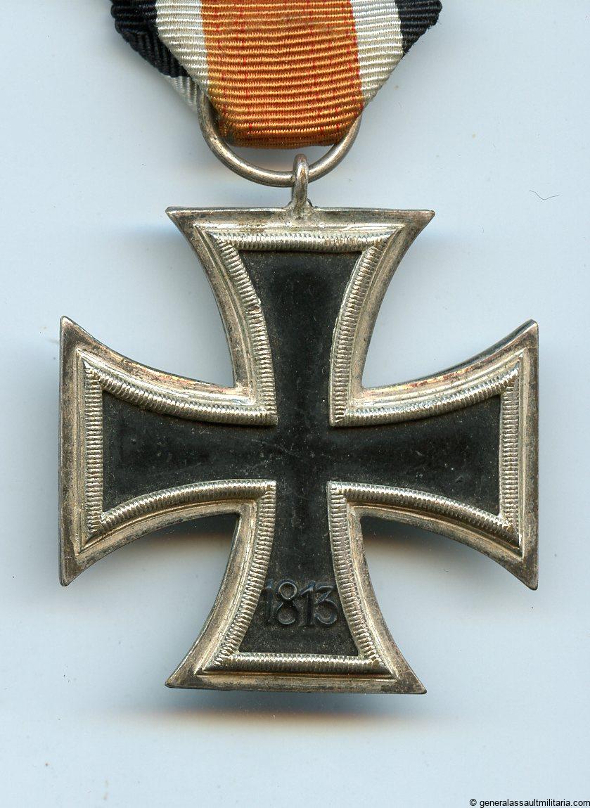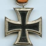 Iron cross second class – Wilhelm Deumer, Lüdenscheid. Early Schinkel Deumer frame Ek2 with glossy paint core. Remains in good condition with nearly all frosting intact. Comes with orange looking ribbon.
