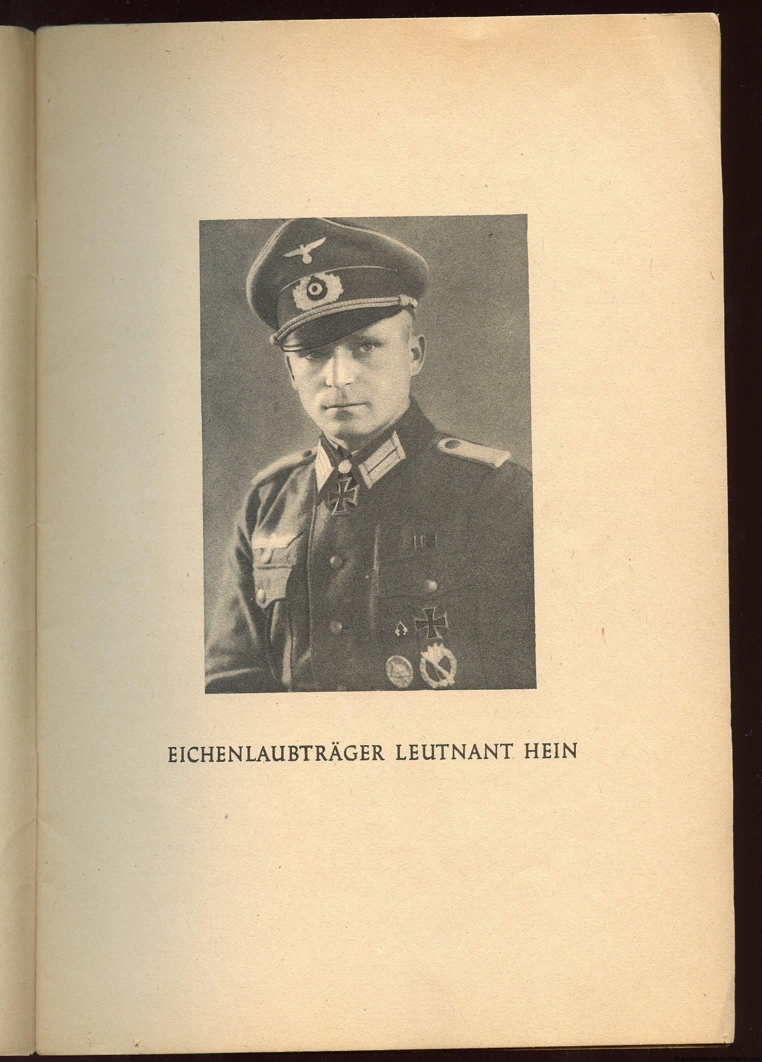 Knights cross booklet – Oak leaves holder Leutnant Hein. A5 size 40 page booklet for the army knights cross holder and oak leaves winner Leutnant Hein. Shows lots of early life, career and action history on Hein. Great booklet with information on a specific knights cross holder. Remains in average condition with some wear to the corners, but all pages present and a clean inside.