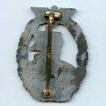 Kriegsmarine auxiliary cruiser badge – Steinhauer & Lück, Lüdenscheid. Late war zinc construction with riveted tombac globe. Typical later period S&L production with magnetic setup. Good condition with the globe still nicely finished and some dark green spots on the wings and wreath. The pin shows some the gold finish still and shows surface rust. Good representable Auxiliary badge, one of the cheaper variants of this more uncommon KM award.