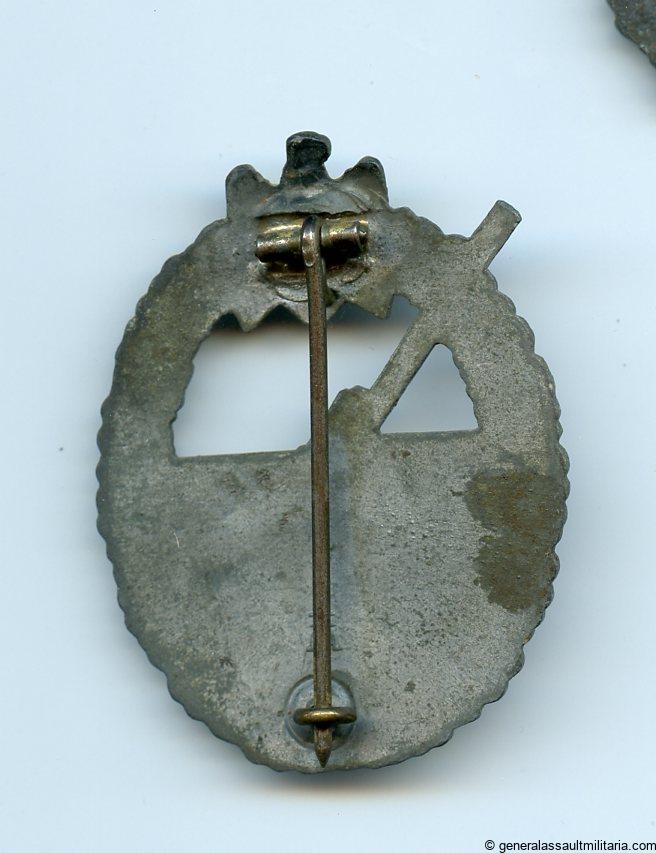 Kriegsmarine coastal artillery badge – Maker Hermann Aurich. Solid Zink construction with crimped in set up and nicely marked with Aurich logo HA in a circle. Good condition with a good amount of the decolored original finish still present. Not repaired with no damage.