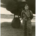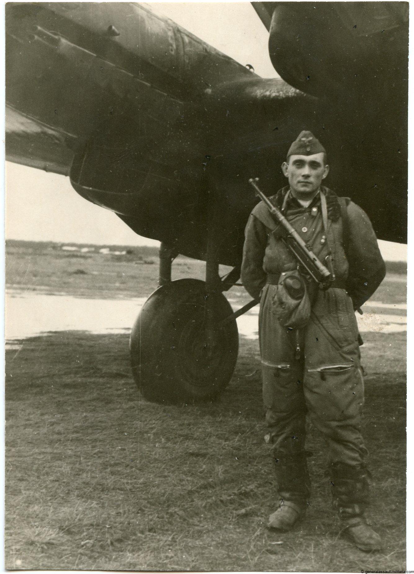 18×12 Cm Luftwaffe flight crew member with MP38/40 and flight overall standing in front of a Heinkel 111 Bomber. On unmarked photo paper and appears to be album removed. only very light front staining and scratches.