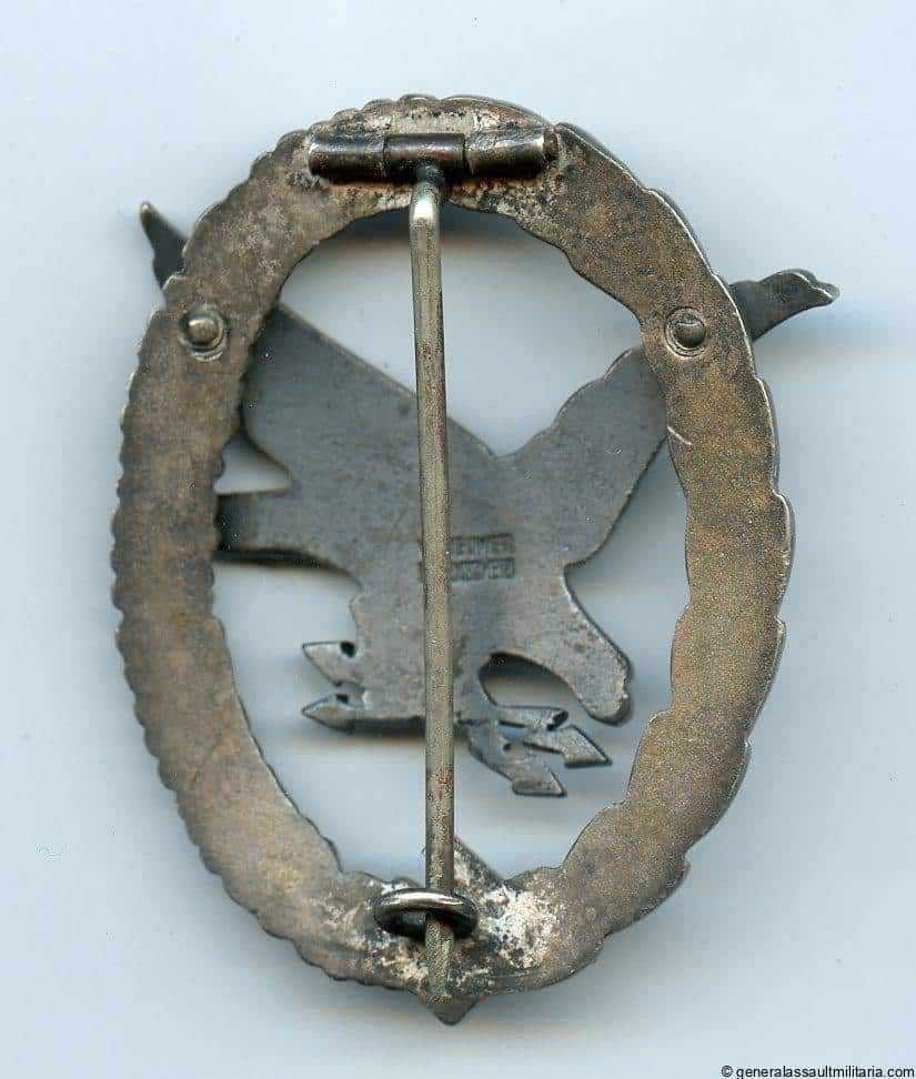 Luftwaffe air gunner radio operator badge – Wilhelm Deumer, Lüdenscheid. Early war Deumer marked and Deumer parts ‘Fliegerschützenabzeichen’. Remains in lightly worn condition with excellent burnishing on the eagle and slight patina on the wreath. Very high quality and sought ROAG in excellent very lightly worn condition.