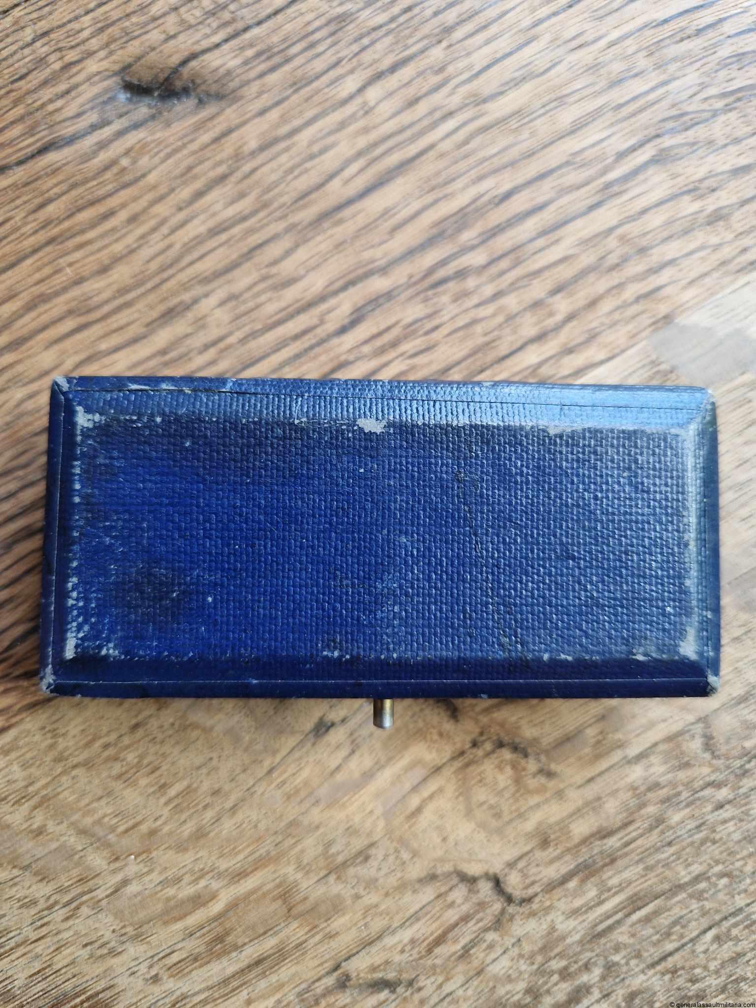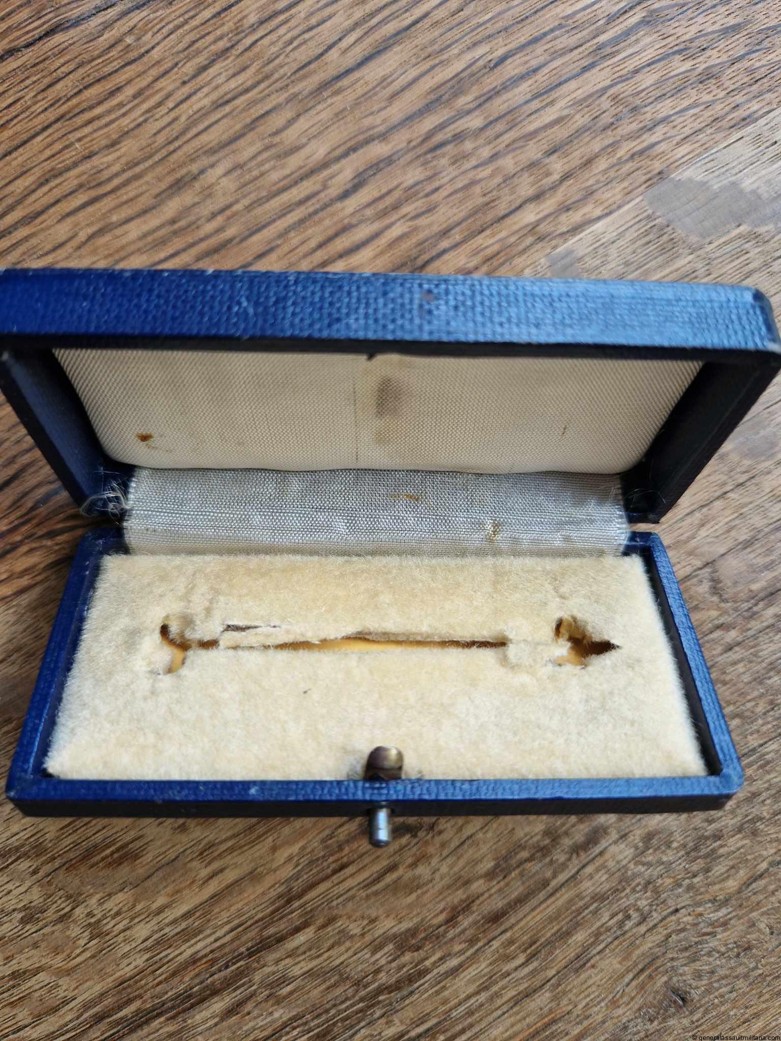 Luftwaffe bomber clasp in silver cased – C.E. Juncker, Berlin. Early war tombac clasp with silver plated finish and riveted burnished bomb device. Remains in very lightly worn condition with all the silver finish remaining on the ‘Frontflugspange’ and nearly all burnishing. Comes with matching early to mid war case in that shows moderate wear to the outside and still clear gold lettering on top. Good matching Juncker set.