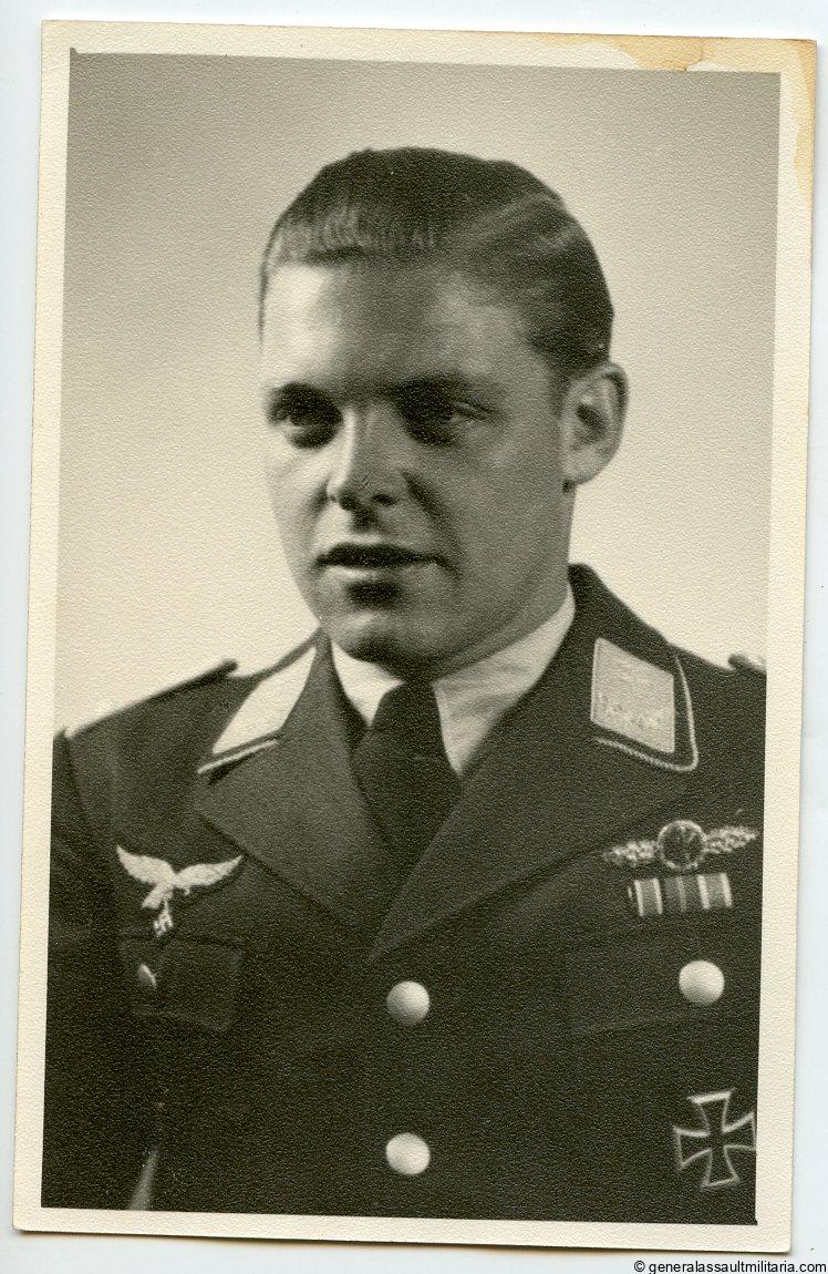 Luftwaffe fighter pilot portrait. Silver fighter clasp, Ek1 and ribbon bar in wear. Remains in excellent condition, postcard size, Kodak portrait paper, Bad Wiessen atelier stamp.