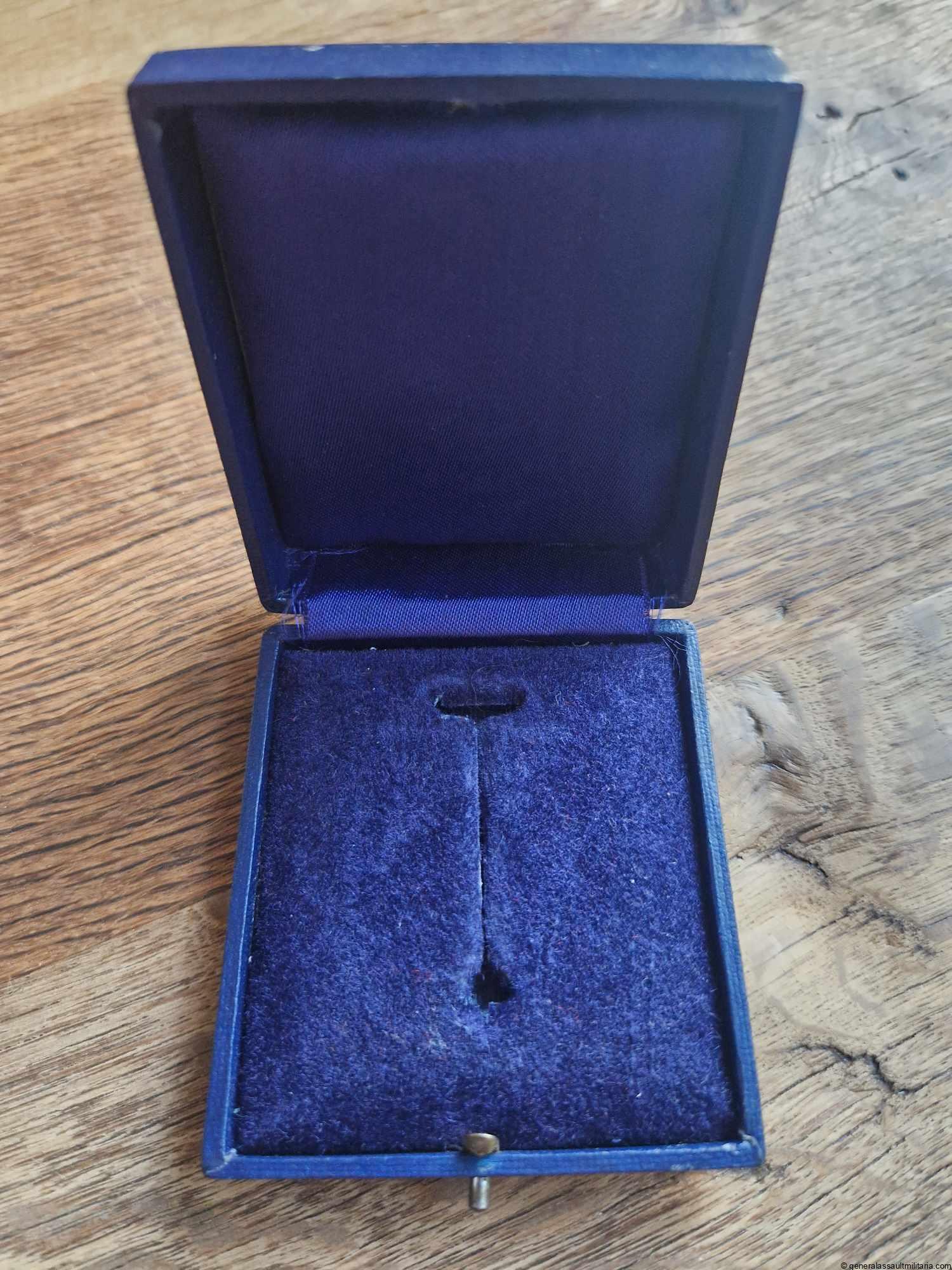 Luftwaffe Flak case – J2/J3 type. Early to mid war case for the Luftwaffe Flak badge made by Juncker. Remains in near mint condition with perfect gold lettering and blue appearence. Inside remains clean and untouched. Very difficult case to upgrade.