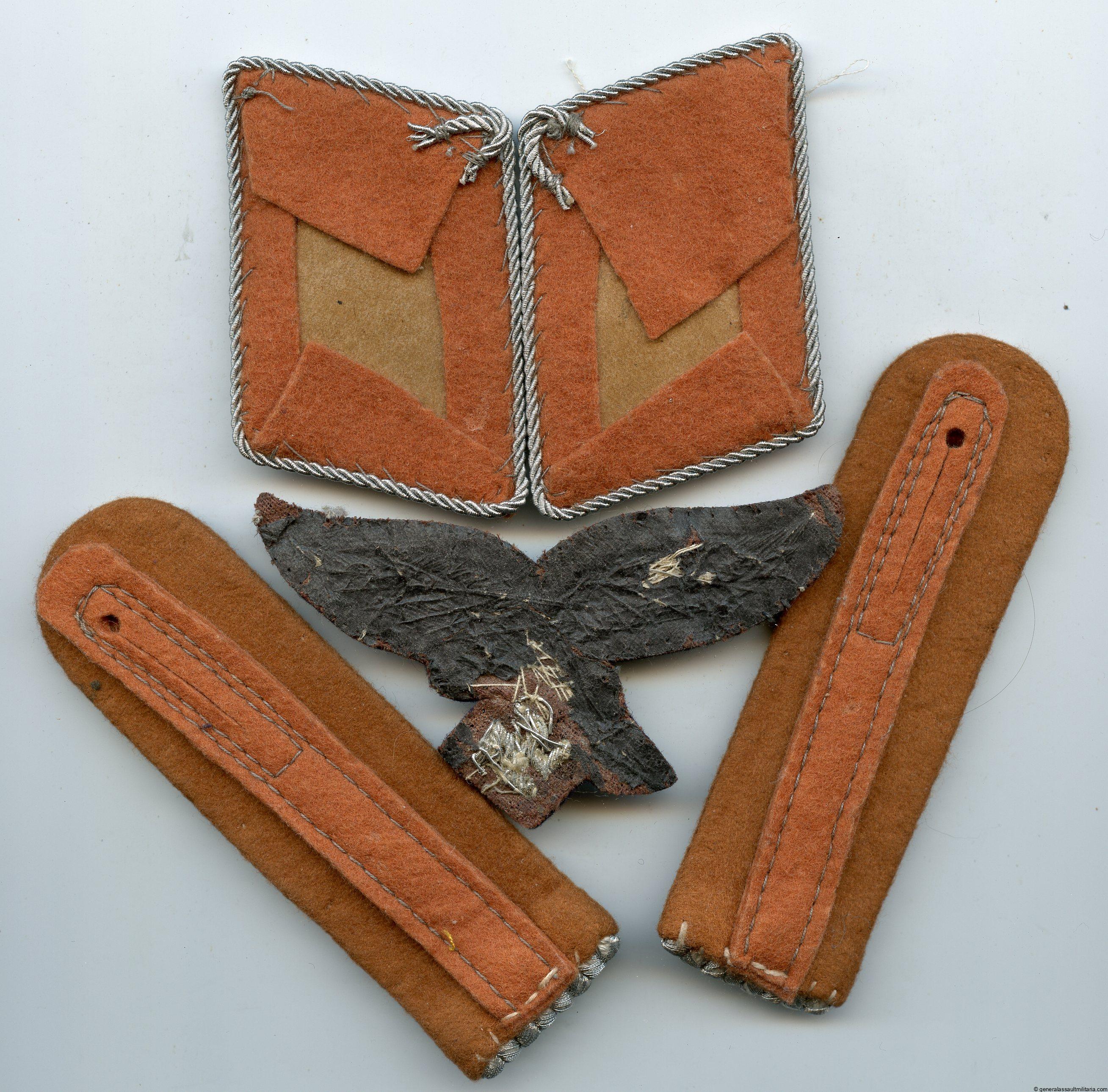 Luftwaffe Nachrichten(Signals) Leutnant insignia set. Matching set with both the collar tabs, bullion breast eagle and shoulder boards. Remains in excellent condition with minimal wear. Top set!