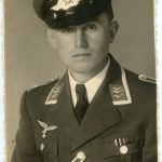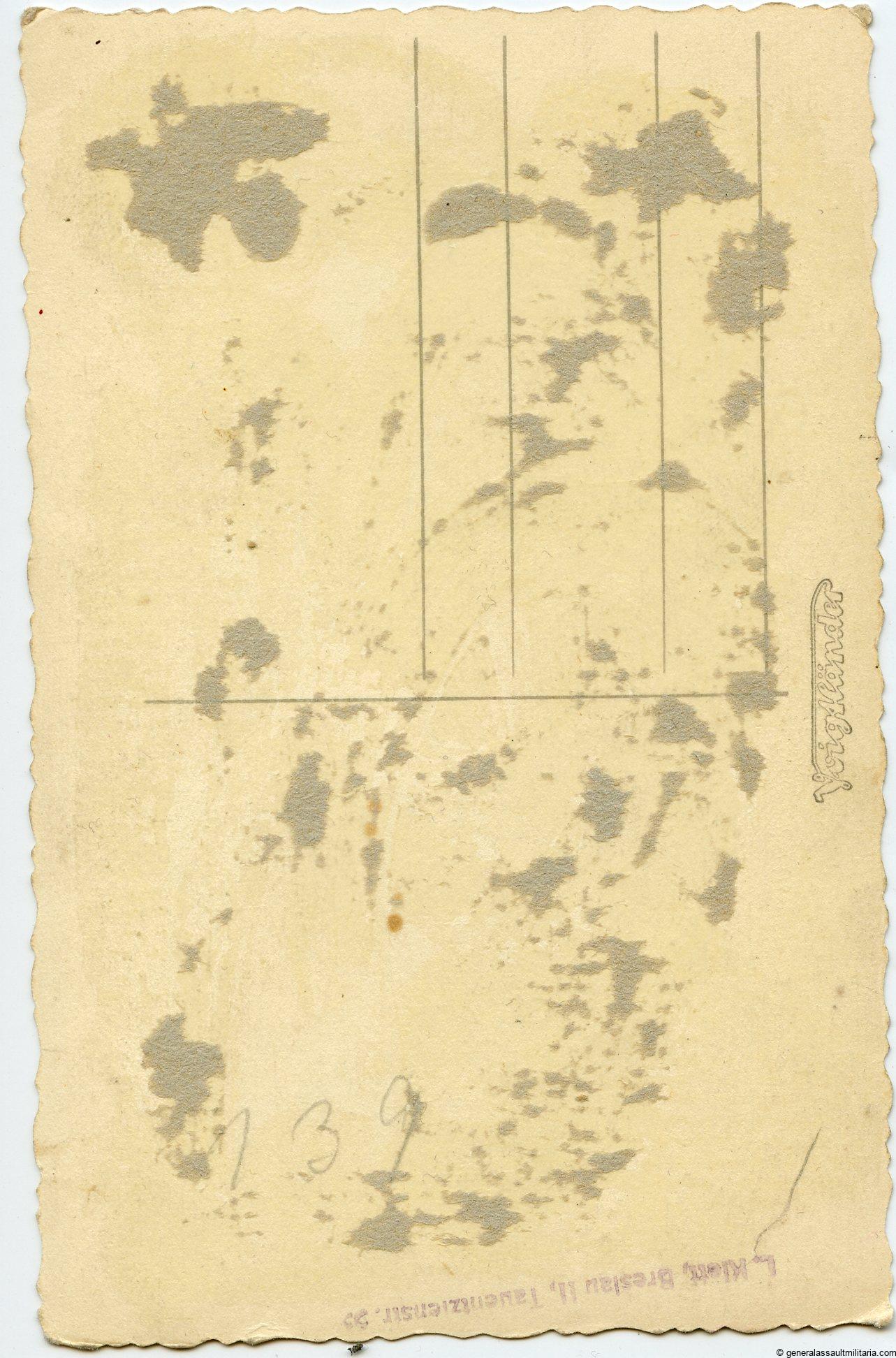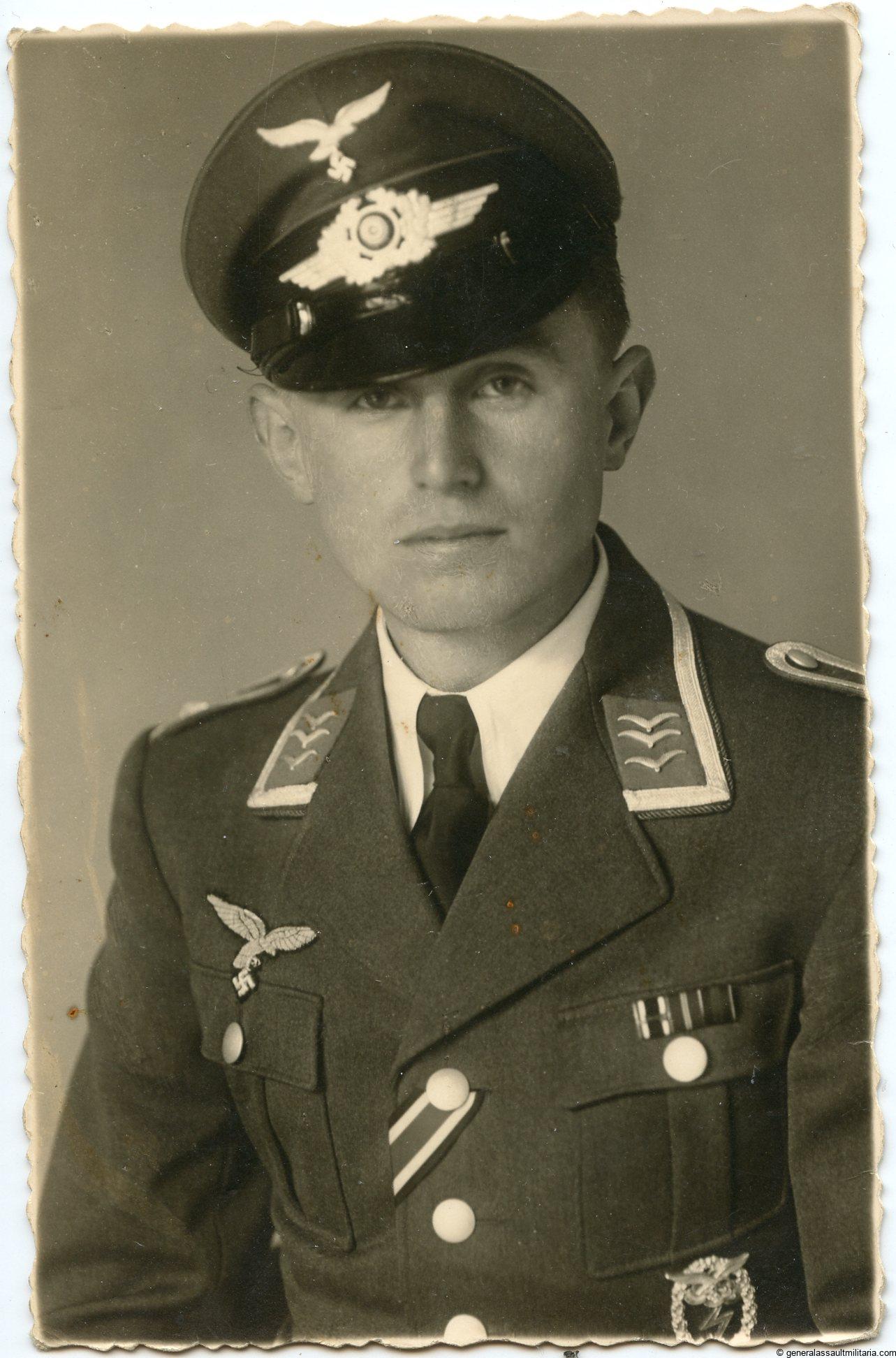 Luftwaffe obergefreiter portrait with LW GAB, Ek2, Kvk + Austria + Sudetenland ribbon bar in wear. Good looking sharp portrait with only light staining on the front. The ‘Erdkampfabzeichen’ is nicely visible. Album removed at some point, on Voigtländer portrait paper.
